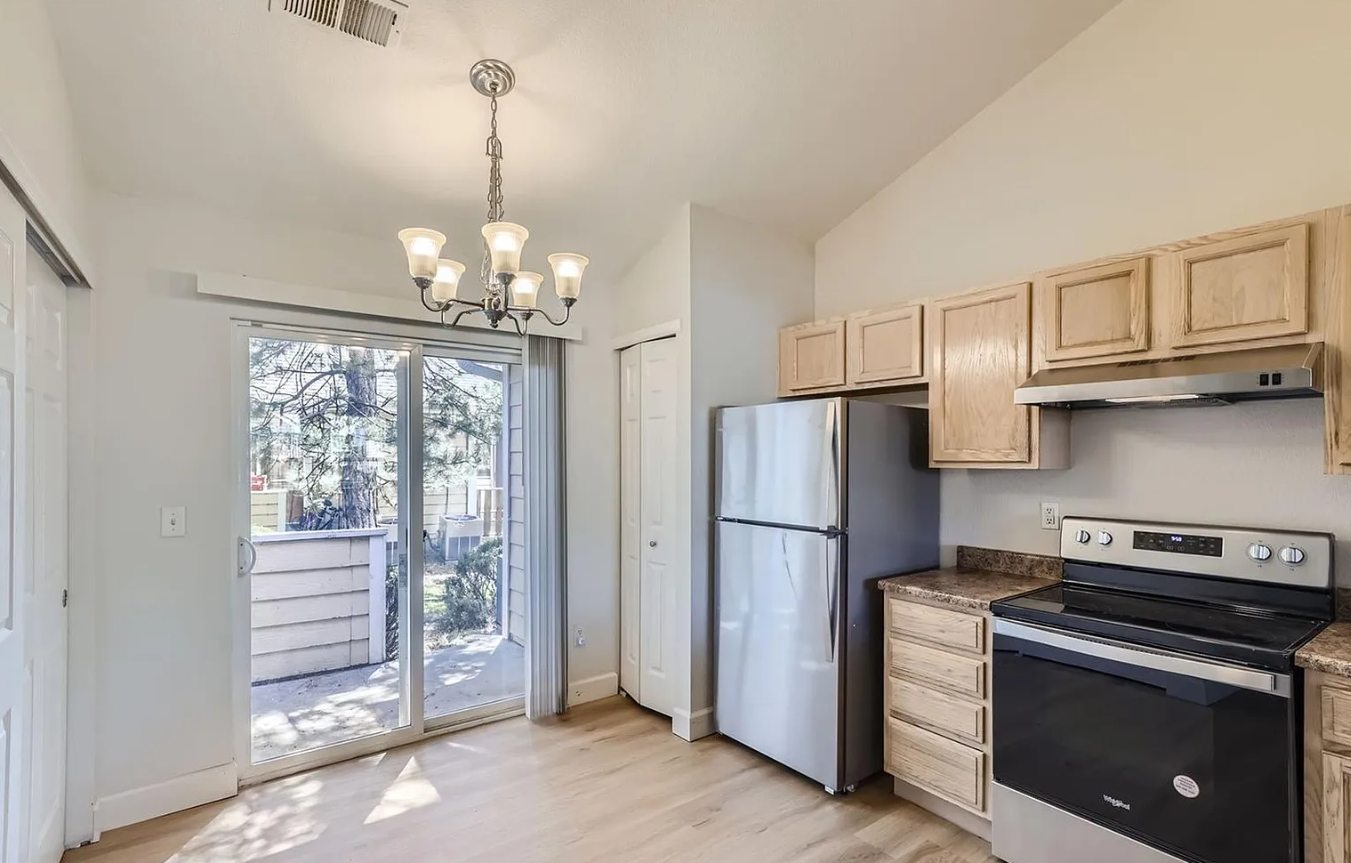 Discover this charming and modern 2-bedroom, 1-bathroom townhouse in Aurora, Colorado, United States offering a comfortable and convenient lifestyle. Built in 2000, this single-level home features an open floor plan with vaulted ceilings, providing a spacious feel. The updated interior includes new flooring, fresh paint, and brand-new appliances, including a refrigerator, oven, dishwasher, and stackable washer/dryer.