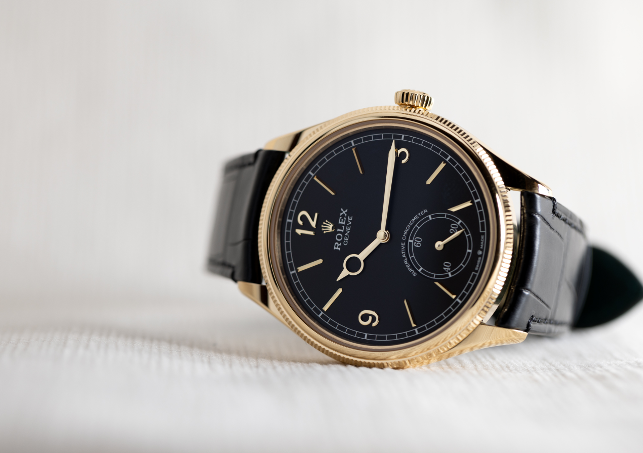 The Rolex Perpetual 1908 embodies the perfect balance of classic refinement and modern innovation. With a 39mm 18kt yellow gold case and an intense black dial, this timepiece showcases exquisite craftsmanship, technical precision, and elegant aesthetics.