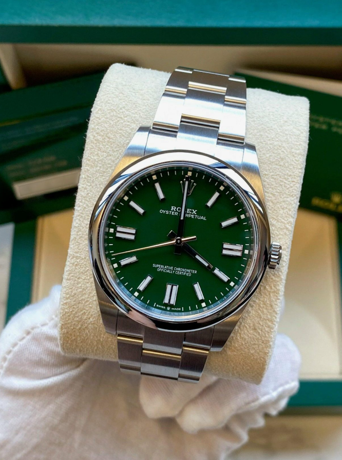 Designed for those who appreciate understated luxury, the Rolex Oyster Perpetual 41 Green Dial is more than just a watch—it’s a legacy of precision engineering and classic style. Whether worn for everyday elegance or as a statement accessory, this timepiece is a symbol of Rolex’s relentless pursuit of perfection.