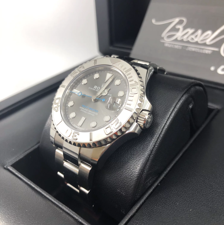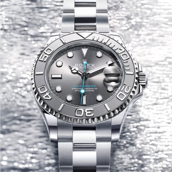 The Rolex Yacht-Master 37 Oystersteel and Platinum Slate, seamlessly blends luxury with high-performance functionality, making it the ideal choice for sailing enthusiasts and those seeking both precision and sophistication in a timepiece.