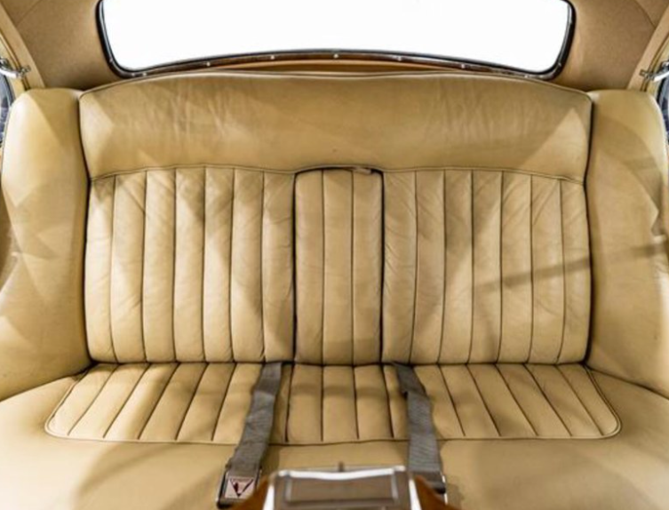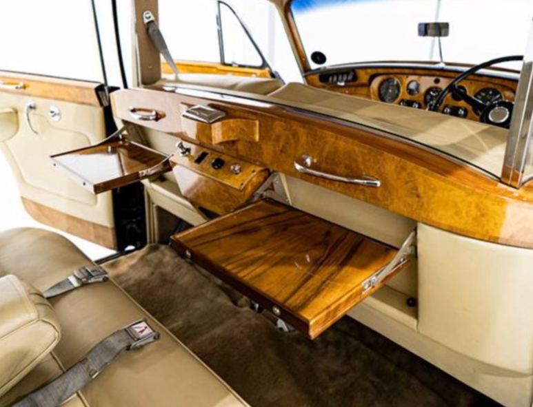 - Interior: Cream Connolly hides, blue Wilton rugs, walnut veneered dashboard, and picnic tables.
