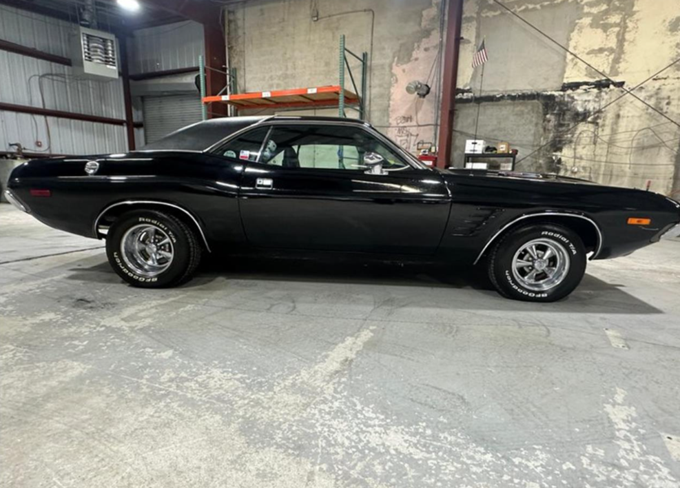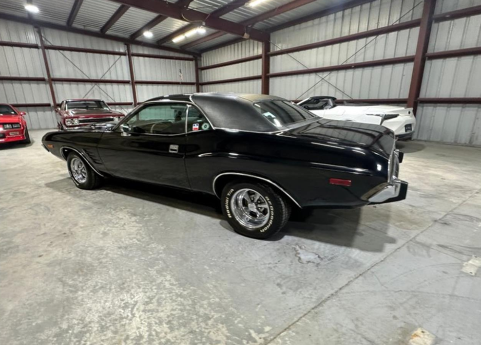 This 1973 Dodge Challenger features the original 340 V8, automatic transmission, and Rallye Package. Finished in Black Diamond with a sleek black interior, it offers classic muscle car performance, Cragar wheels, power steering, and front disc brakes.