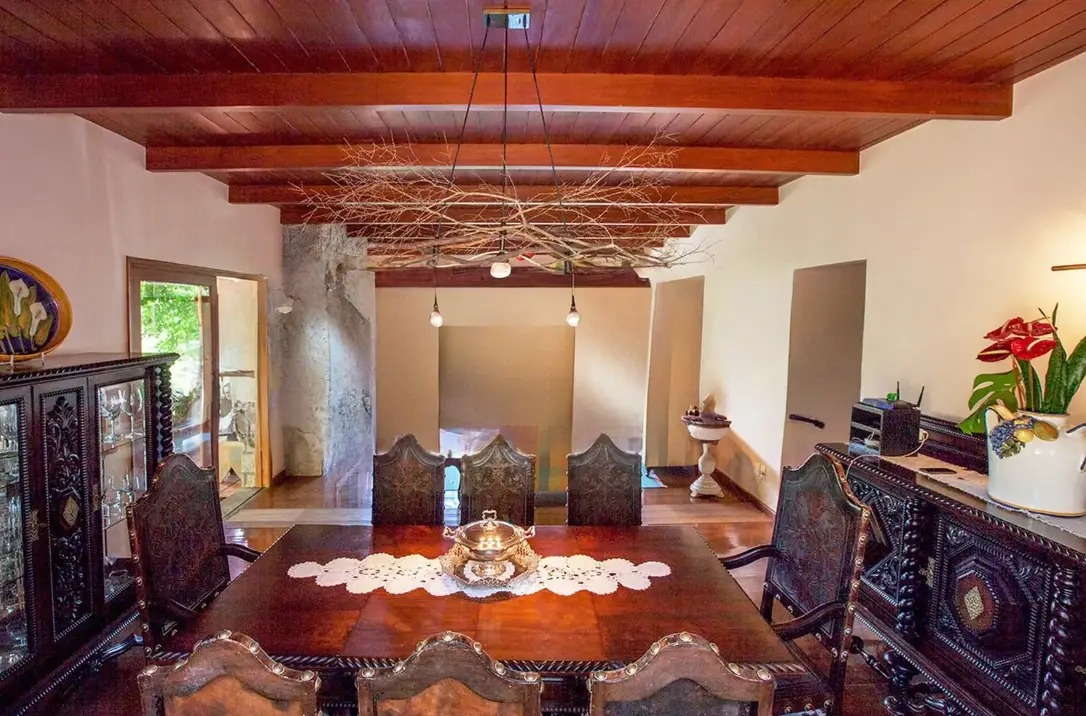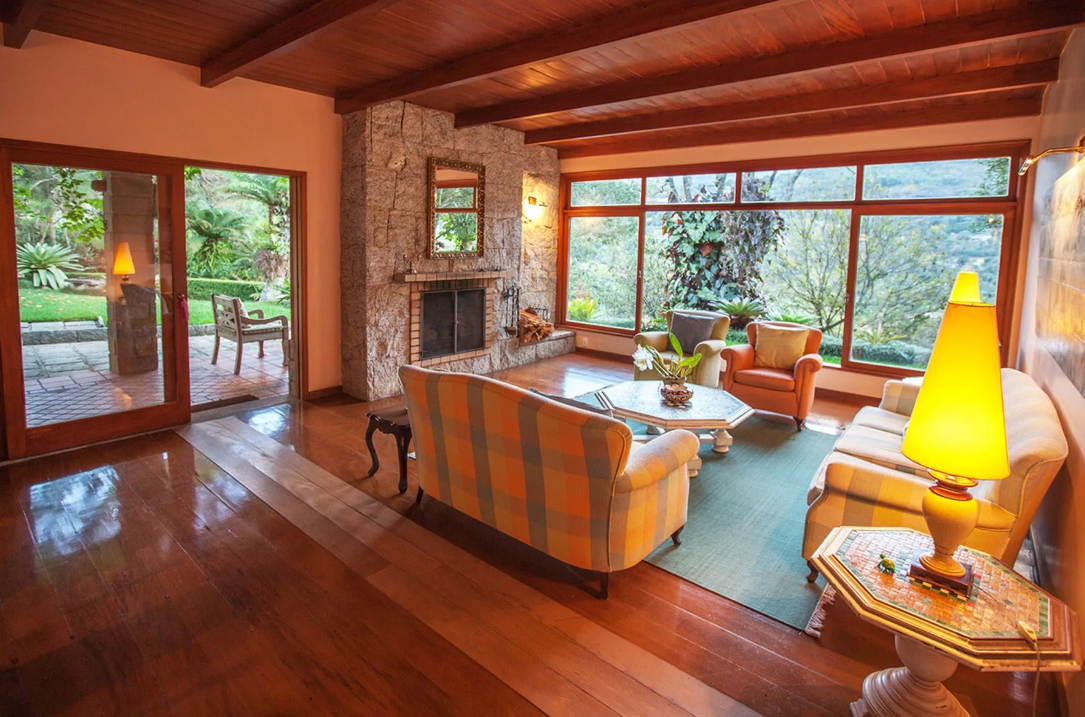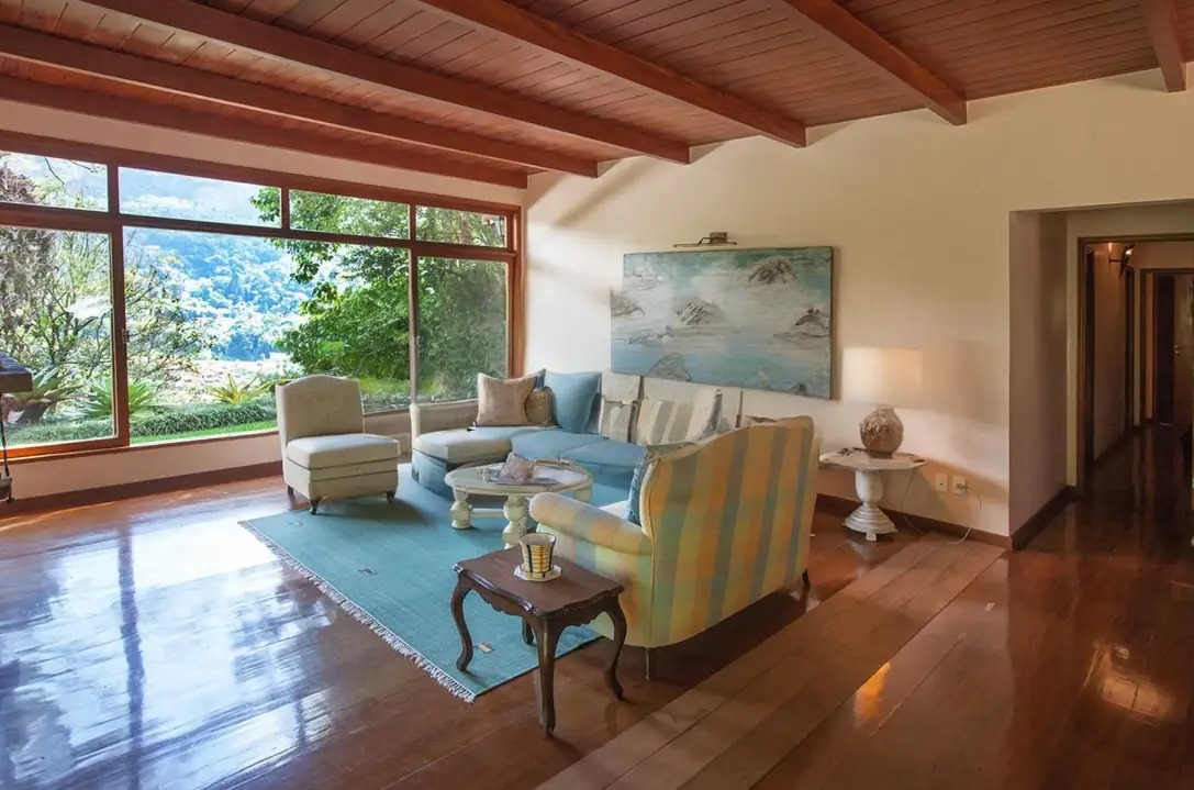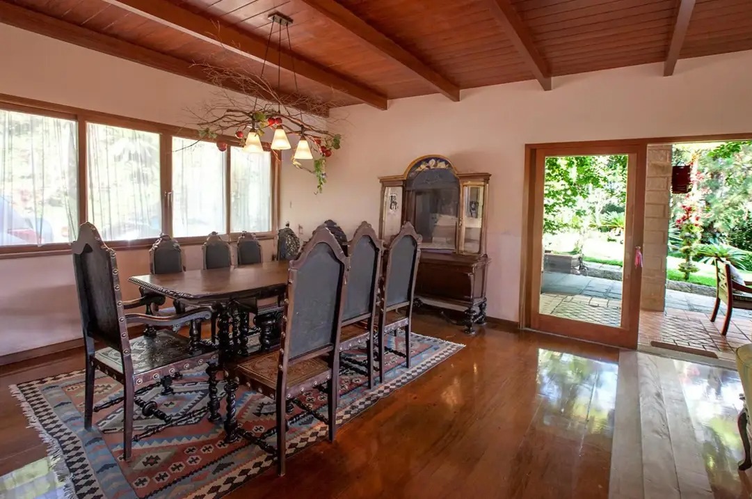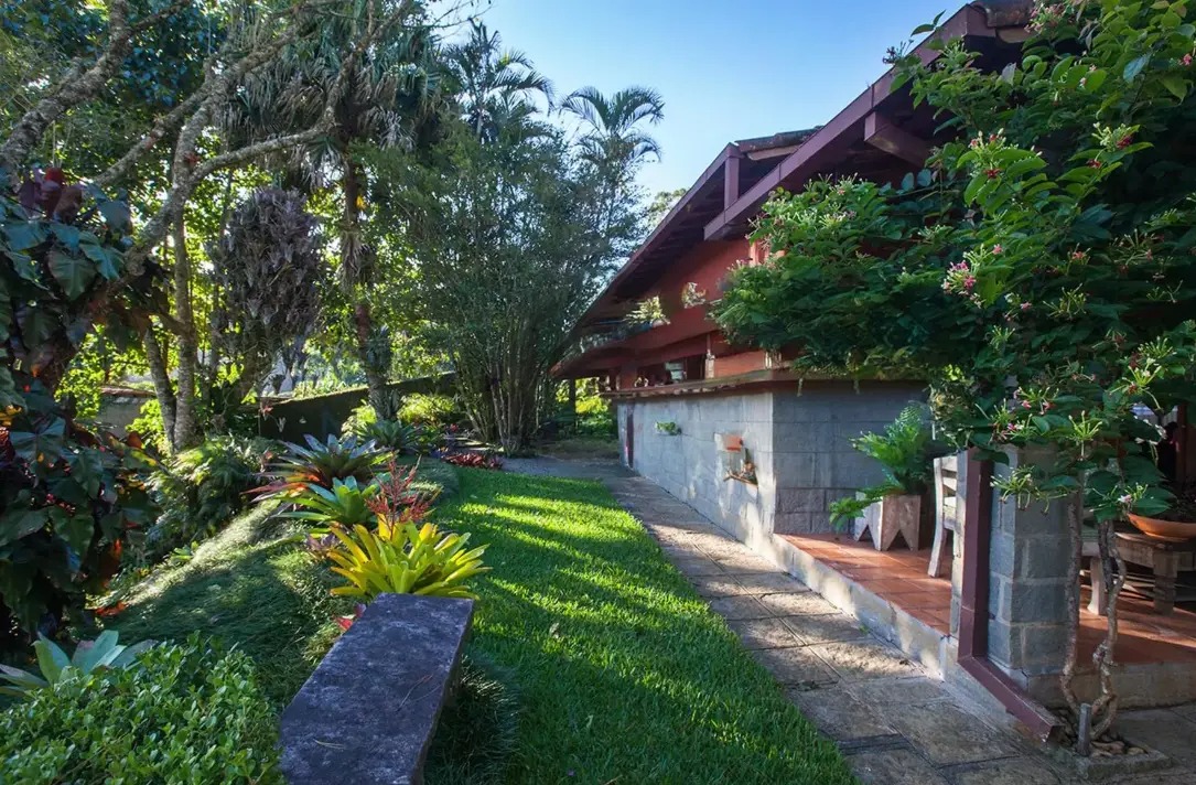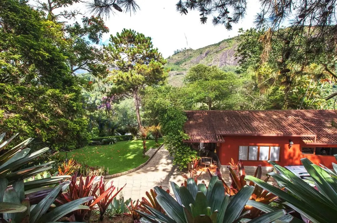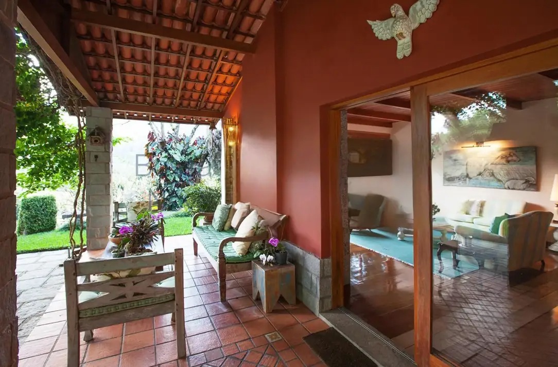 Located 90 km from Rio de Janeiro, this beautifully renovated ranch in Parque do Imbuí offers a peaceful retreat with gardens, orchids, and stunning mountain views, combining natural beauty with modern comforts.