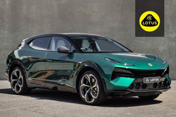 The 2024 Lotus Eletre is a stunning SUV that combines cutting-edge electric performance with modern luxury. Featuring a 112kWh battery and dual-motor drivetrain, this fully electric vehicle delivers an impressive range of 279 miles on a single charge. The sleek Galloway Green exterior is paired with a Quartz interior, offering a blend of style and sophistication. With just 3,500 miles, this high-spec Eletre R is equipped with advanced features such as a KEF reference audio system, an intelligent glass roof, and 23-inch diamond-turned alloy wheels with carbon fiber inserts.