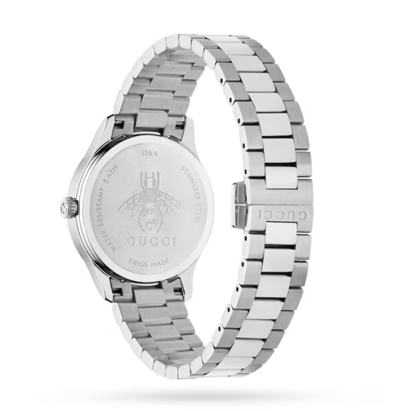 - Dial: Radiant gold finish, enhanced with Gucci’s signature bee motif for a distinctive aesthetic.