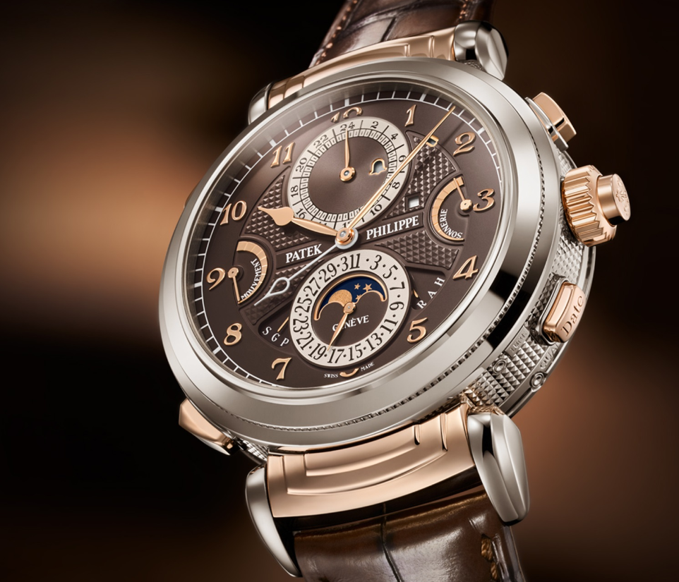 The Patek Philippe 6300GR Grandmaster Chime is a breathtaking timepiece that blends advanced mechanics with refined design. As part of the Grand Complications collection, this two-tone version combines white gold and rose gold, featuring elegant brown opaline dials.
