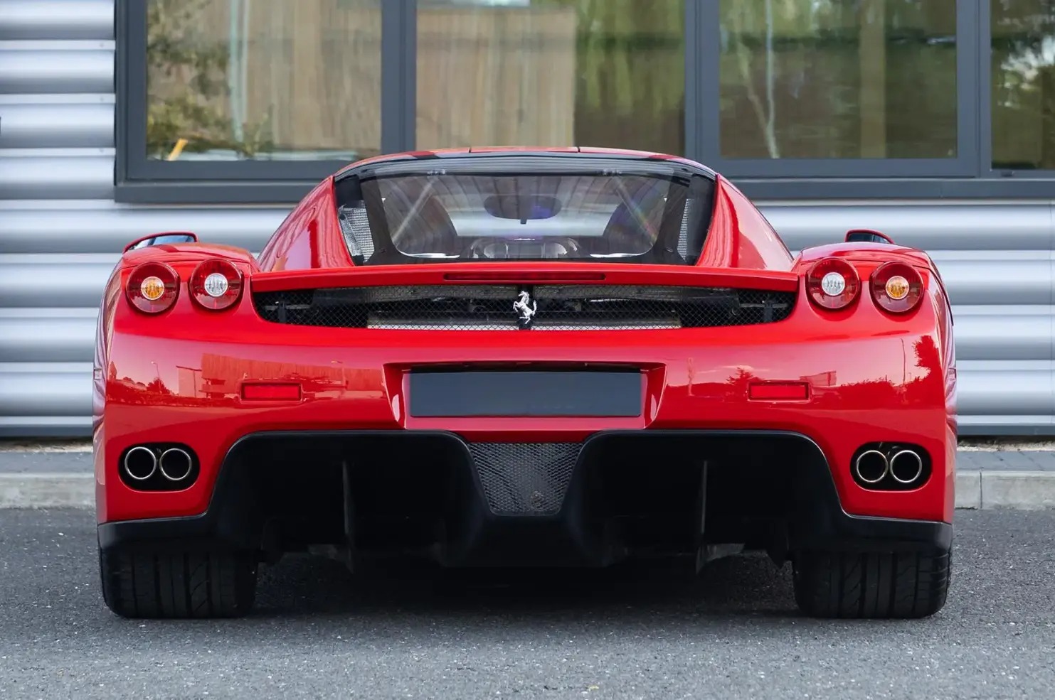 The 2004 Ferrari Enzo in Rosso Corsa with Nero leather is a rare supercar with only 1,117 miles. Powered by a 6.0L V12 (651 bhp), it reaches 0-62 mph in 3.1 seconds and a top speed of 218 mph. Previously owned by Jenson Button and Ferrari Classiche certified.