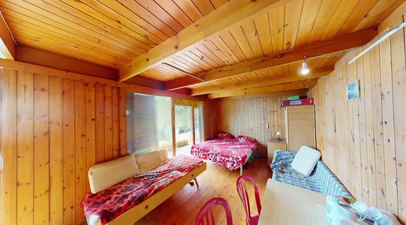 - Secondary Unit: A 30-square-meter wooden chalet awaiting renovation, featuring a living area with a kitchen, a bedroom, and a bathroom, blending rustic charm with the serene environment.