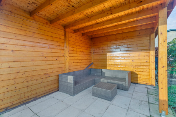 • Detached wooden storage shed at the rear of the garden