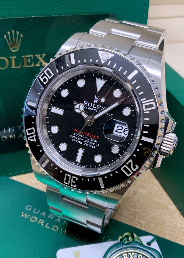 - Features the iconic “Sea-Dweller” name in red, a homage to the original model.