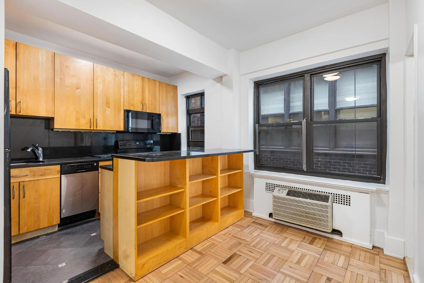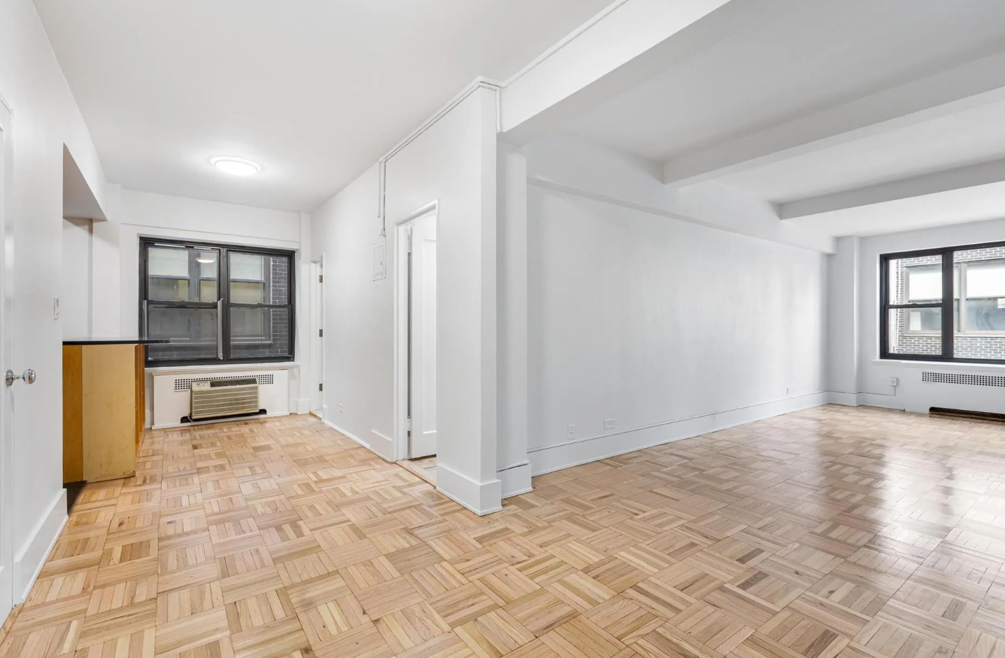 - Ample Closet Space: High ceilings and wood parquet flooring