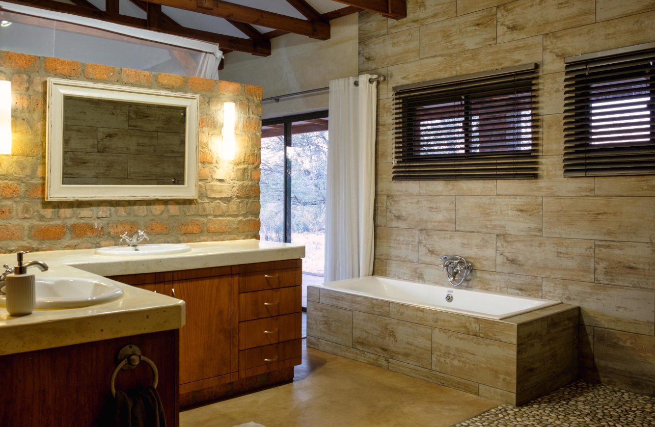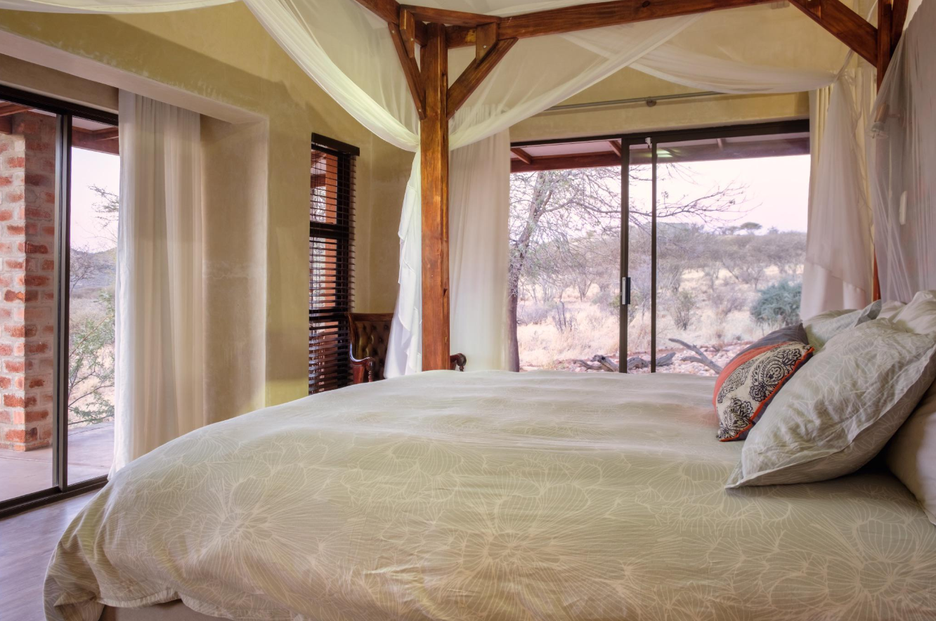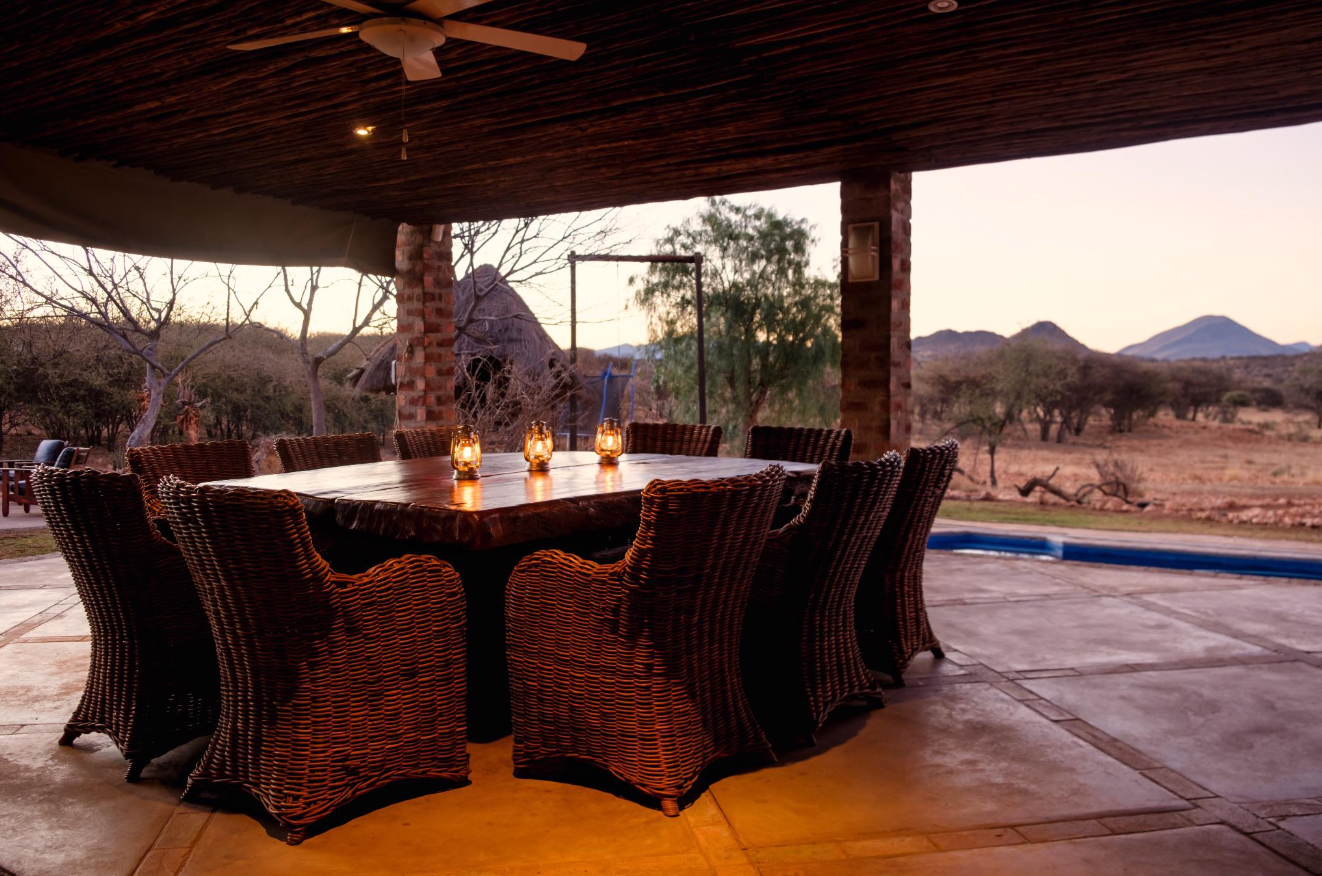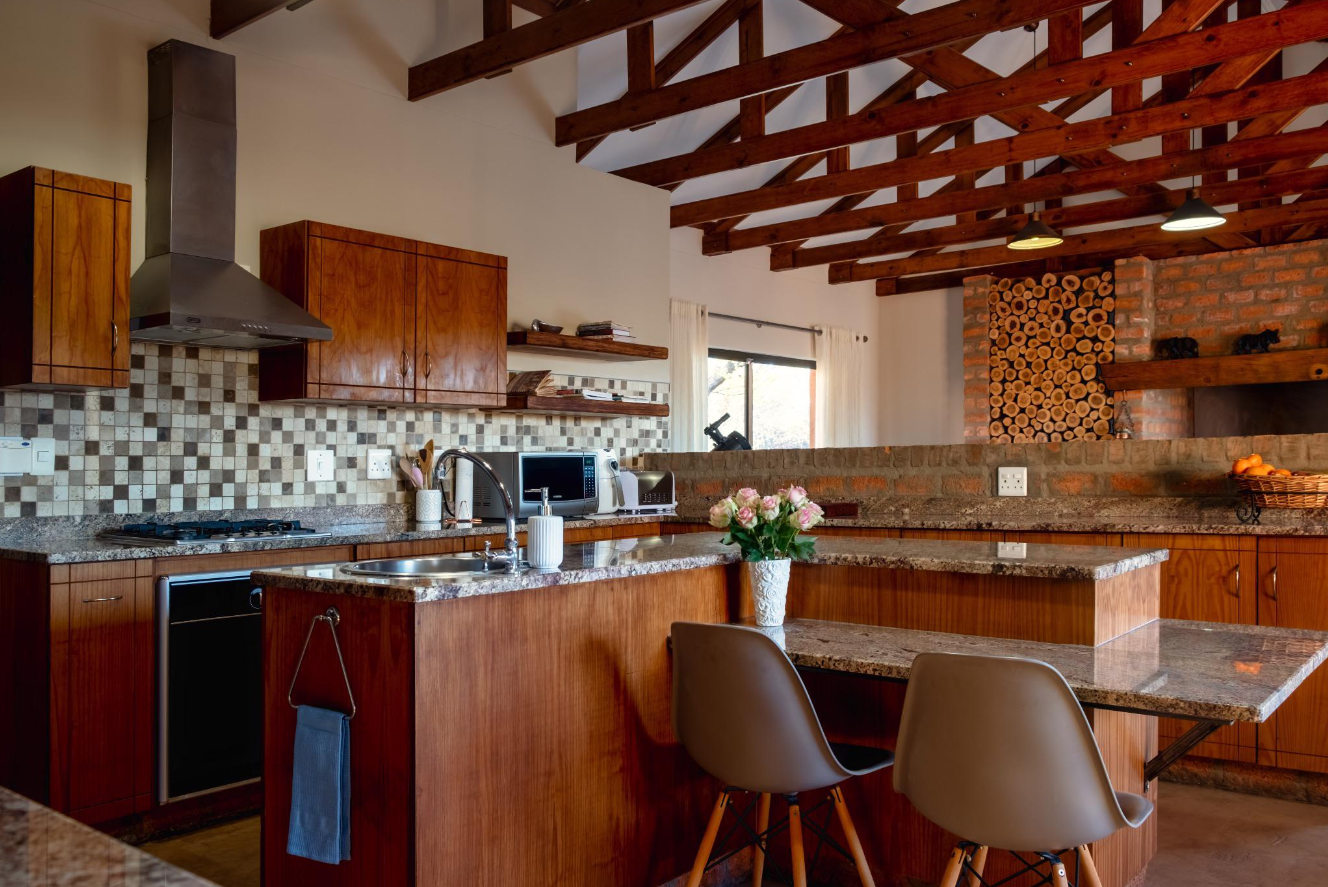 - Outdoor Living: Private patios, sliding doors, and a serene waterhole attracting local wildlife such as giraffes, springboks, and warthogs.