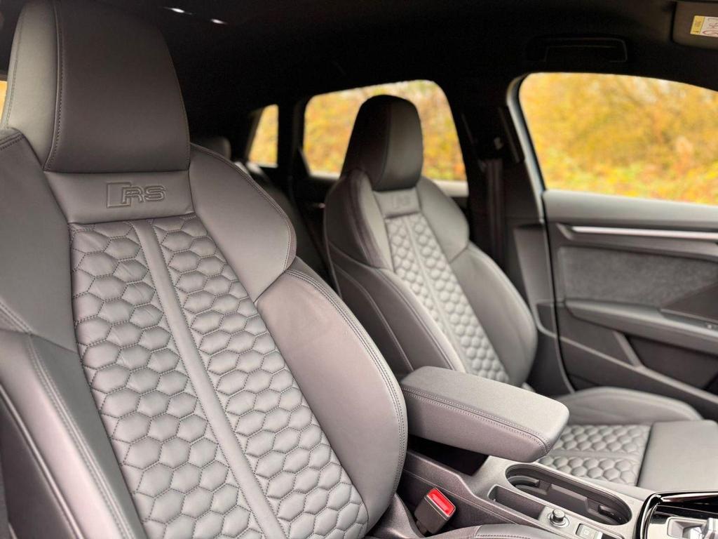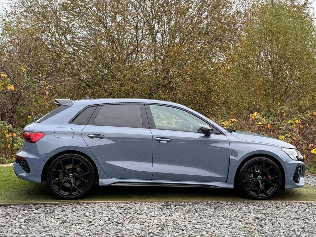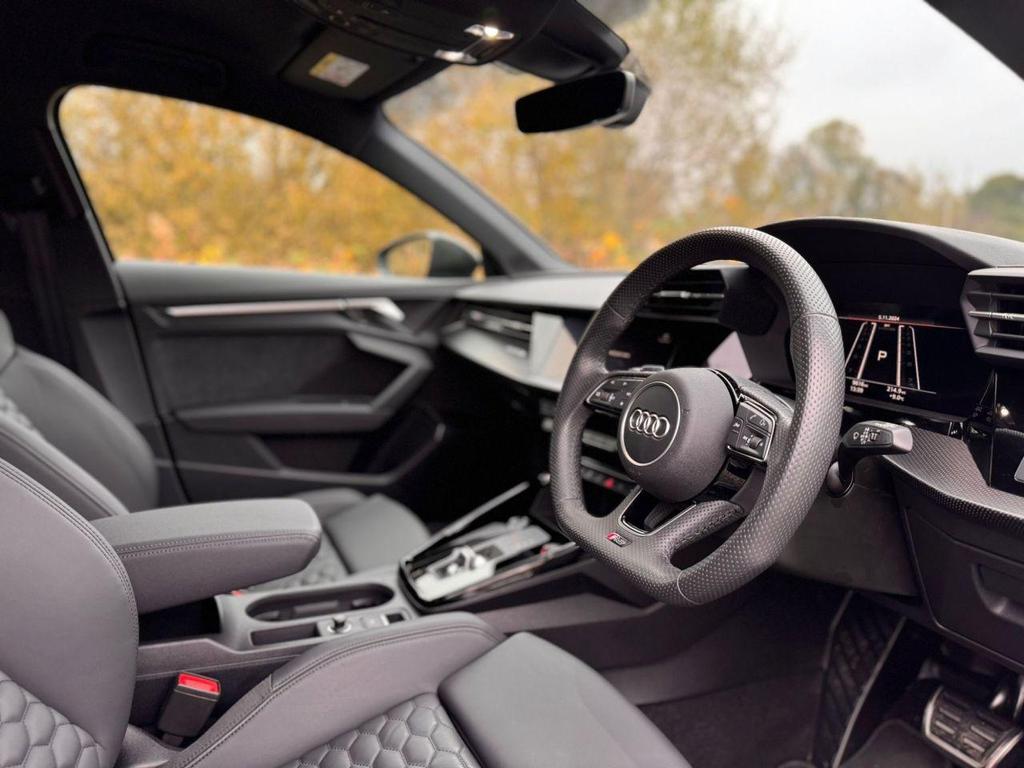 This Audi RS3 also features a range of advanced technologies, including Audi Drive Select, Audi Smartphone Interface, Audi Matrix LED Lighting, and RS Emblems for a sportier, more distinctive look. A carbon roof spoiler and RS Sport Exhaust elevate the performance and aesthetics, while Audi Virtual Cockpit and RS-specific displays keep the driver in tune with every aspect of the vehicle’s performance.