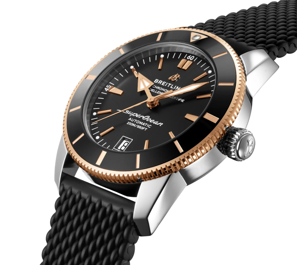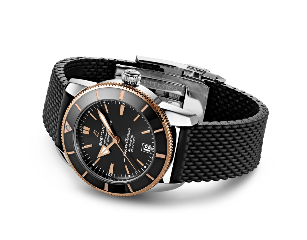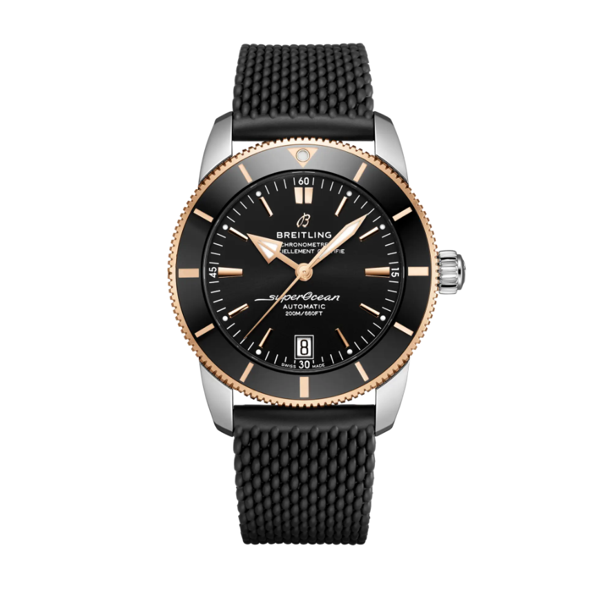 Breitling Superocean Heritage B20 Automatic 42 features a luxurious stainless steel & 18k red gold case, 70-hour power reserve, and 200m water resistance. With a high-frequency B20 movement, black rubber strap, and ratcheted bezel, it’s perfect for style and performance.