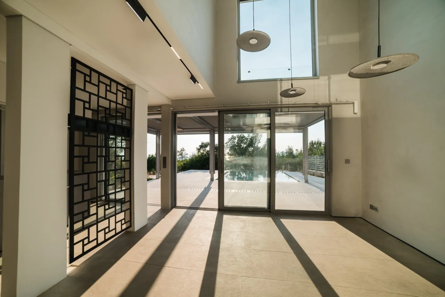 - Ground Floor: Open-plan living, dining, kitchen, infinity pool, garden with sea views