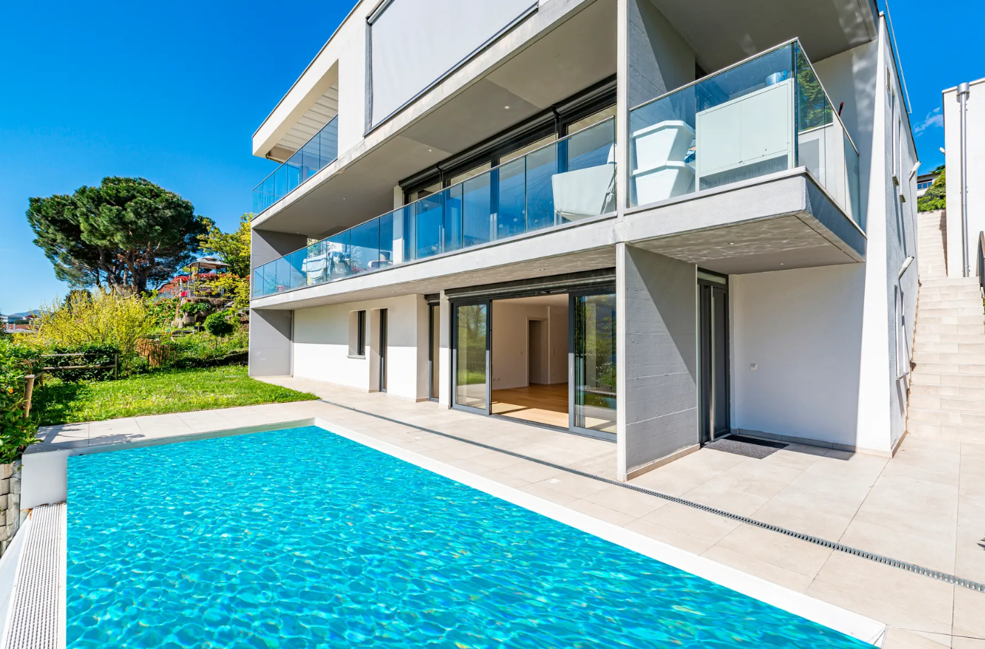 Built in 2017, the apartment occupies the entire ground floor of an exclusive building with only three units. A private garden with a swimming pool and a covered terrace adds to the charm, creating perfect spaces for relaxation and entertaining.