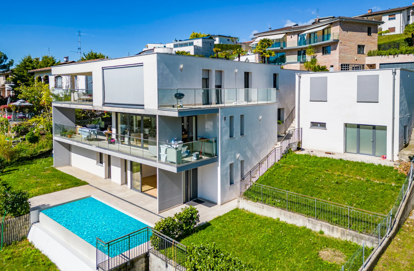 Discover this stunning 149 m² ground-floor apartment, set on a 330 m² lot in a peaceful and sunny location. Boasting modern design and ample privacy, this residence offers a serene lifestyle just 10 minutes from Lugano and close to all essential amenities, schools, and kindergartens.