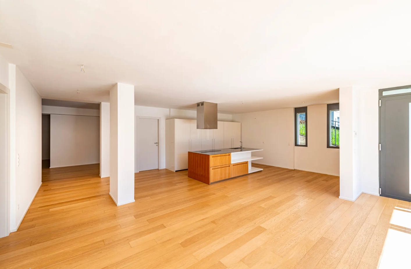 - Spacious living room with dining area and open kitchen
