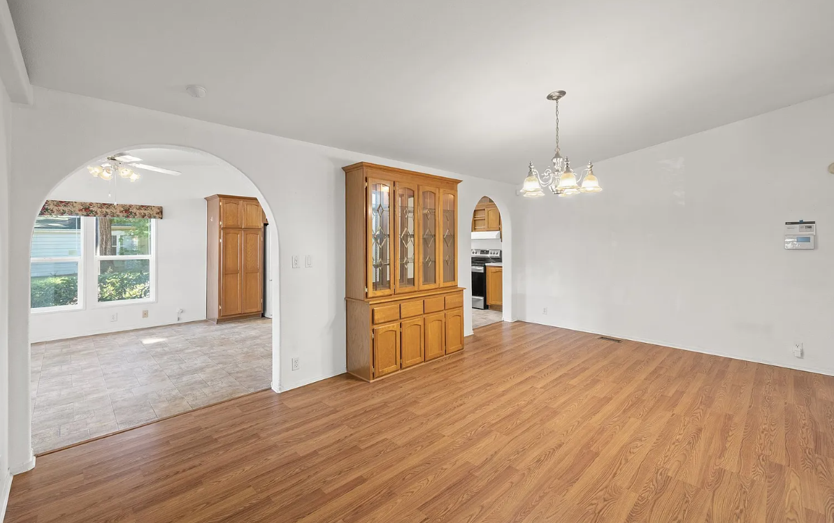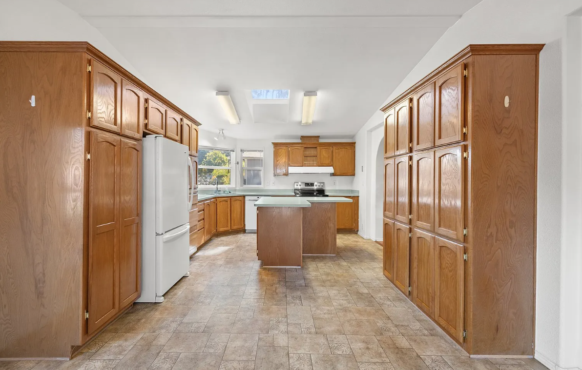 Welcome to this charming 2-bedroom, 2-bathroom manufactured home located on a corner lot with great street appeal in Portland, Oregon, United States. Designed for comfortable living, the home features a massive kitchen with floor-to-ceiling cabinets, a large island, and a breakfast nook, perfect for cooking and entertaining. The light and bright kitchen offers plenty of space for kitchen gadgets and appliances.