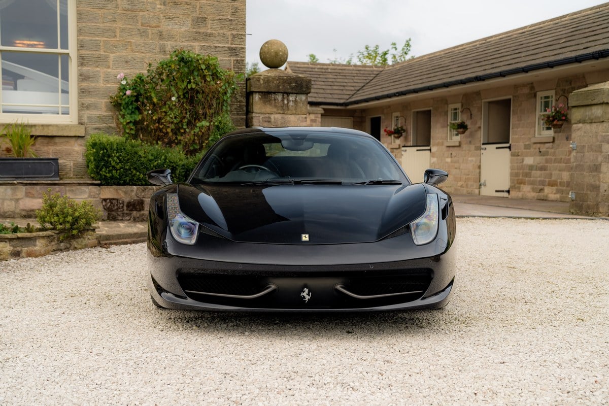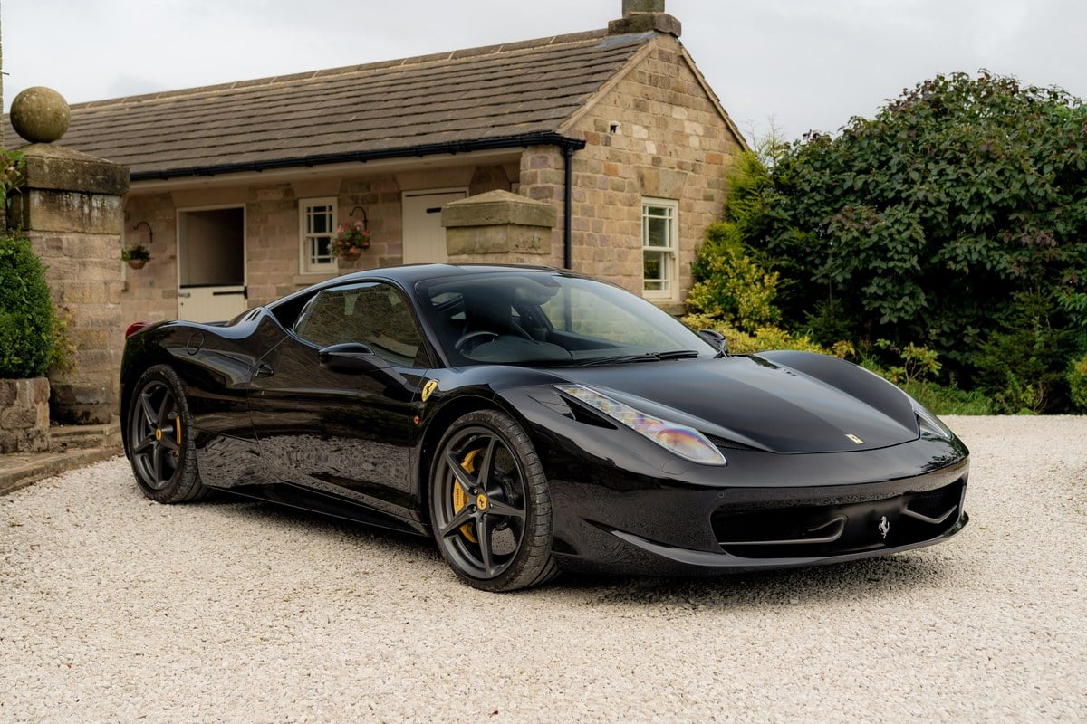 The 2011 Ferrari 458 Italia is a stunning RHD coupe with a 4.3L V8 engine and 7+ speed automatic transmission. Finished in Nero Daytona with carbon accents, it offers performance, luxury, and advanced features like carbon ceramic brakes and a hi-fi system.