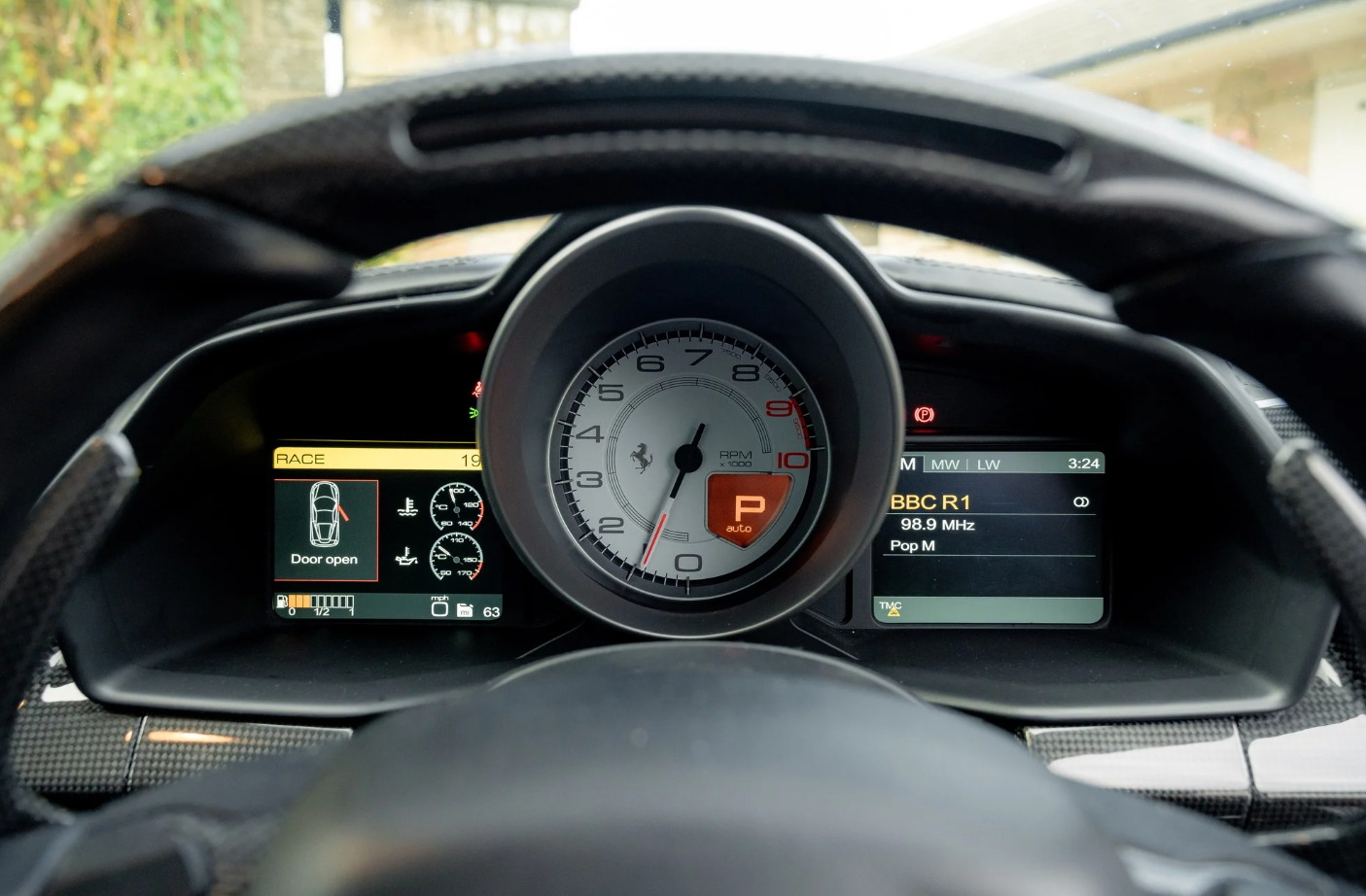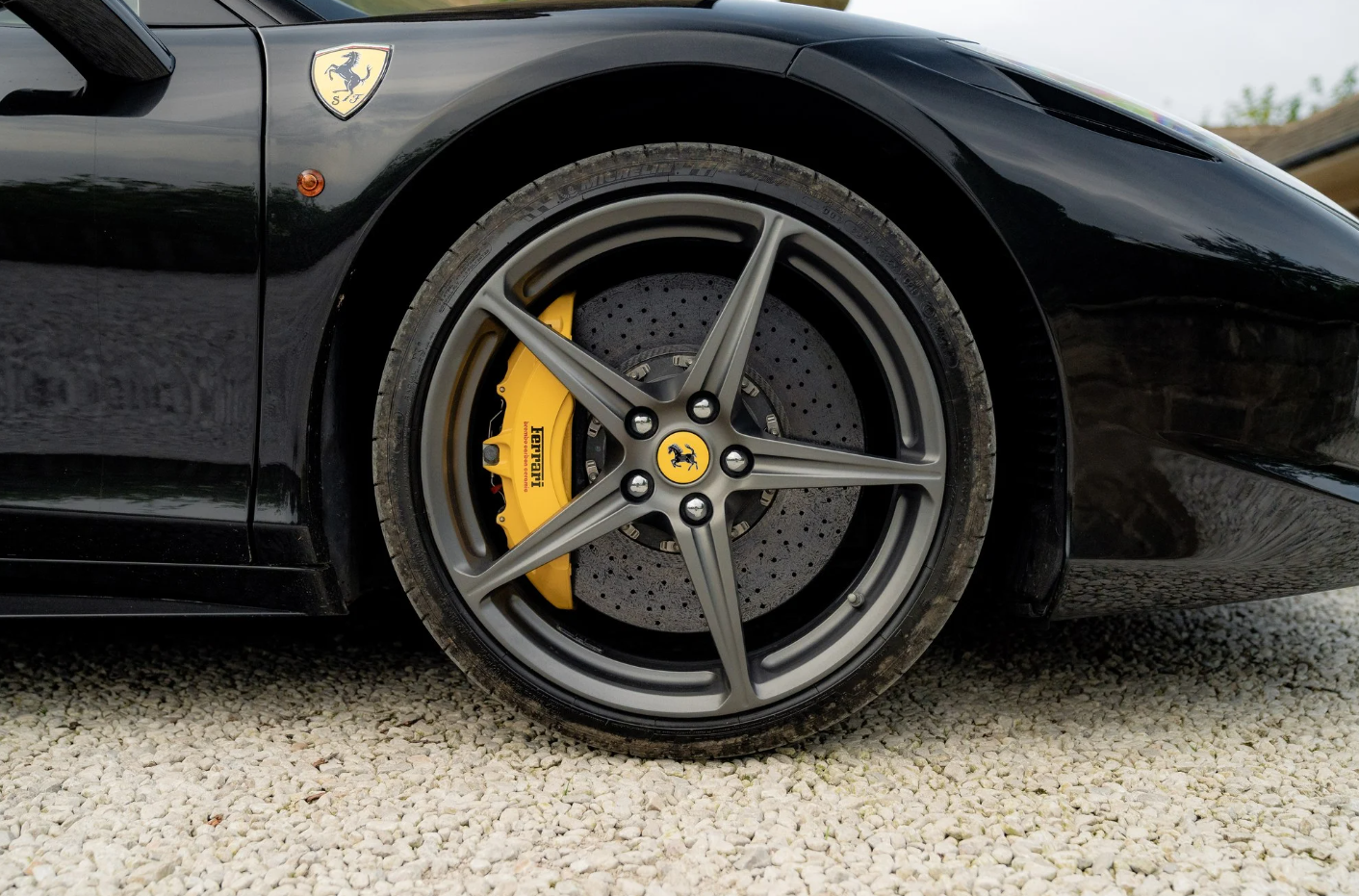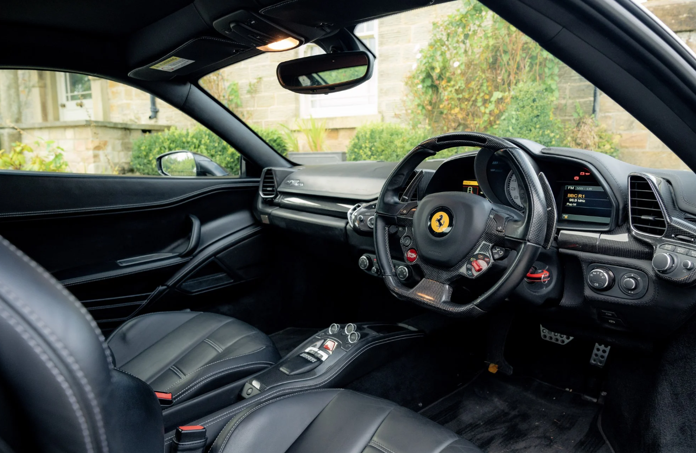 The Ferrari 458 Italia, finished in the stunning Nero Daytona with Nero Leather upholstery, is an iconic representation of Ferrari’s engineering excellence. With only 28,453 miles on the clock, this low-mileage, right-hand drive coupe is equipped with a powerful 4.3L V8 engine and a 7+ speed automatic gearbox for a thrilling driving experience. Featuring a host of high-performance upgrades and carbon fiber accents, it’s a perfect blend of style, luxury, and power.