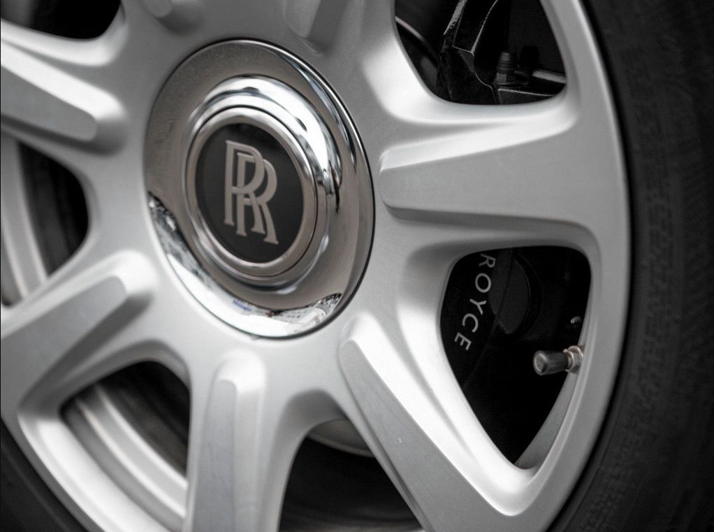 • Interior: Ventilated front seats, extended leather headliner, customized interior with Mandarin details, and embroidered Rolls-Royce monograms on headrests.