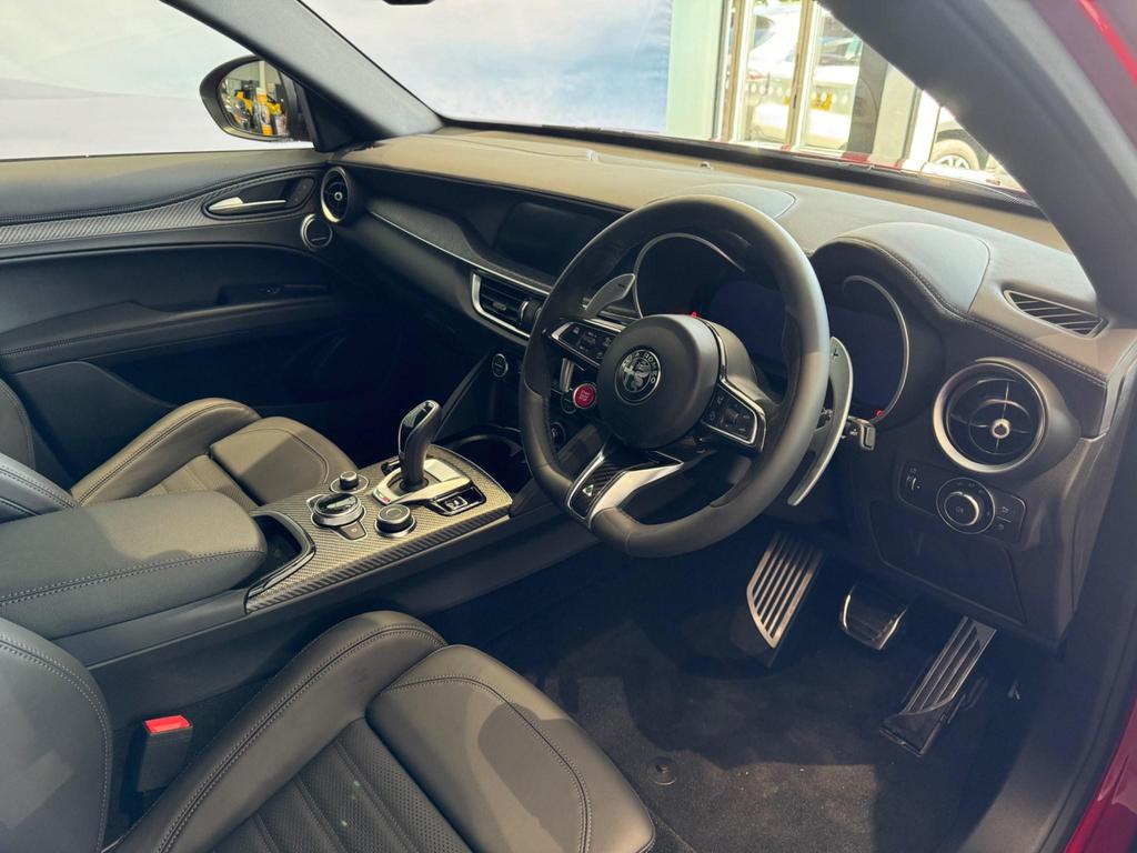 Experience the thrill of performance and luxury in the Alfa Romeo Stelvio Quadrifoglio MY24 – a high-performance SUV designed for driving enthusiasts. With its stunning Etna Red finish and powerful 2.9 V6 Bi-Turbo engine, the Stelvio Quadrifoglio delivers an exhilarating 520 horsepower, offering unmatched driving dynamics and versatility. This model is now equipped with premium features such as Harman Kardon Sound Theatre and a Limited Slip Differential as standard, ensuring you enjoy both exceptional audio quality and superior handling. The optional Sunroof and Red Brake Calipers add an extra touch of style and sophistication.