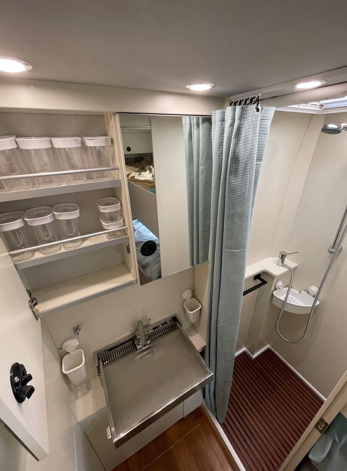 - Water Tanks: 3 freshwater tanks (300L), 1 wastewater tank (170L)