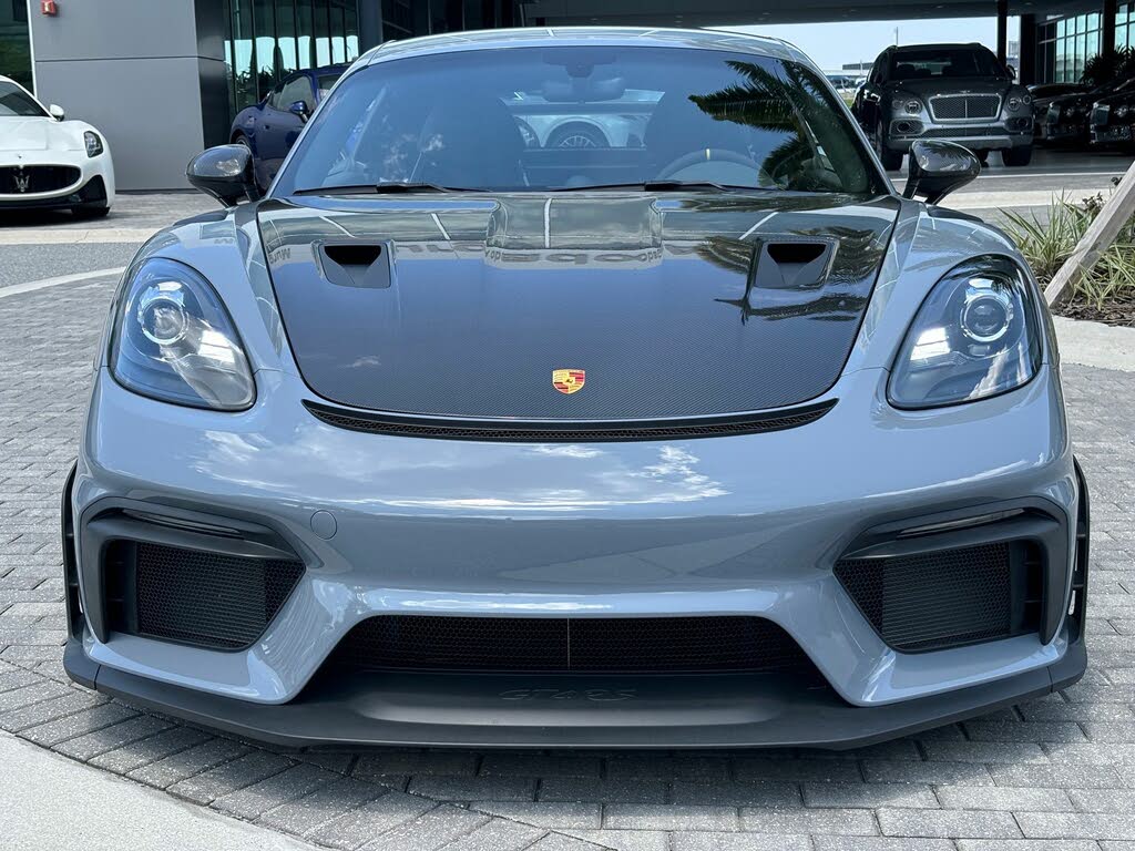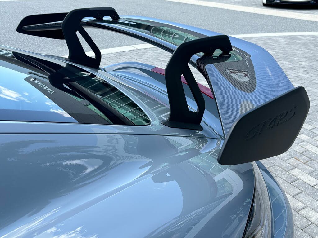 The 2023 Porsche 718 Cayman GT4 RS delivers uncompromising performance with a 493 hp 4.0-liter naturally aspirated flat-six engine derived from the legendary 911 GT3. This limited-production coupe is finished in striking Arctic Grey with a refined black interior, making it both visually captivating and a true driver’s car. With only 716 miles on the odometer, this rear-wheel-drive coupe offers track-level precision while maintaining Porsche’s signature luxury.