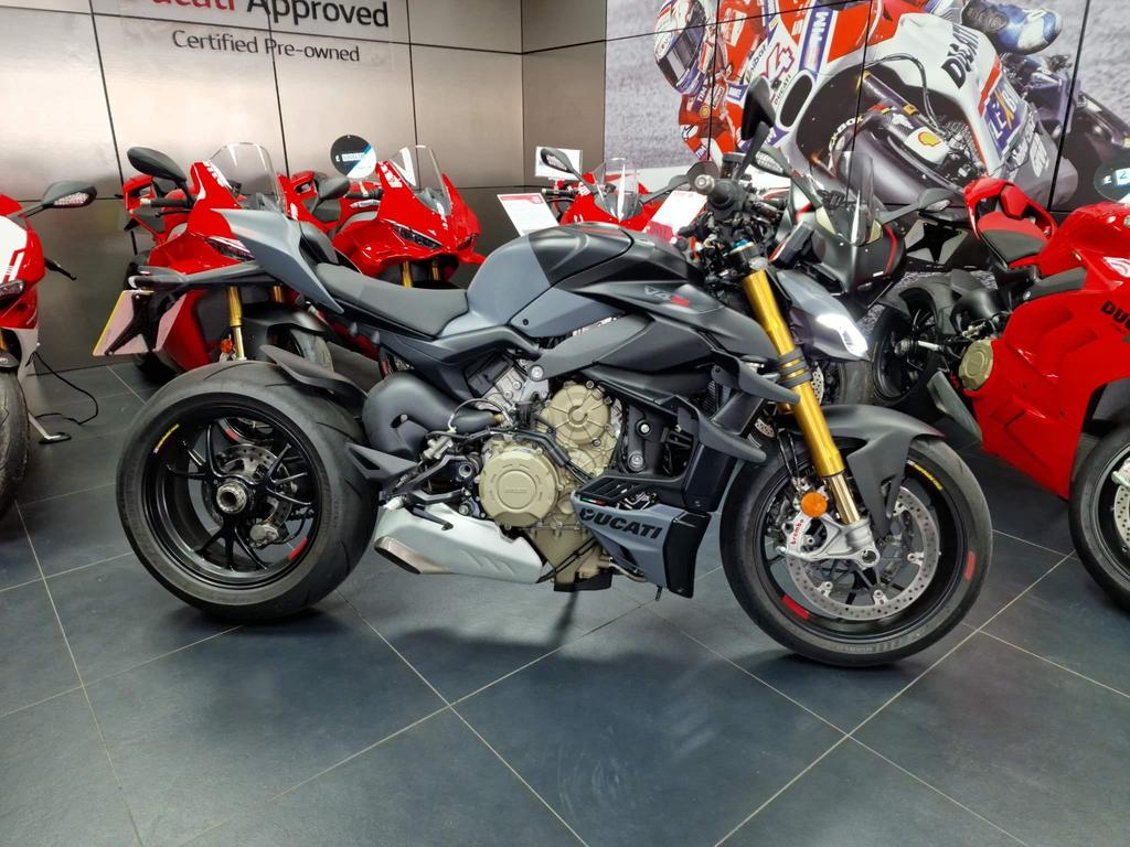 The 2024 Ducati Streetfighter V4S 1100cc offers thrilling performance with a sleek Matt Nero Grey finish. With only 900 miles, this ex-demo bike includes a 12-month warranty, advanced rider modes, and premium safety features for an exceptional ride.