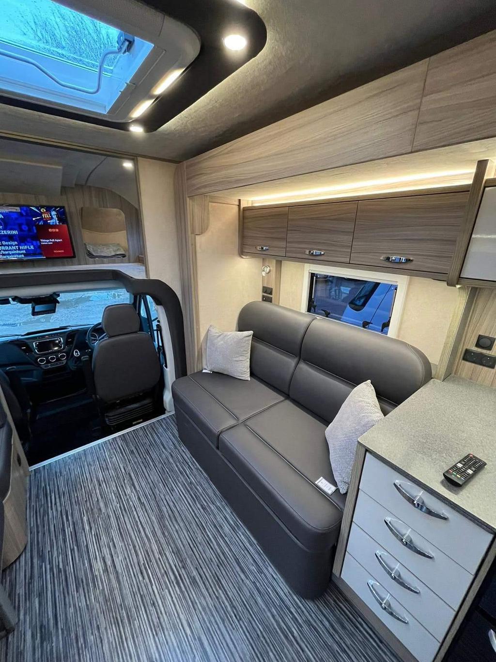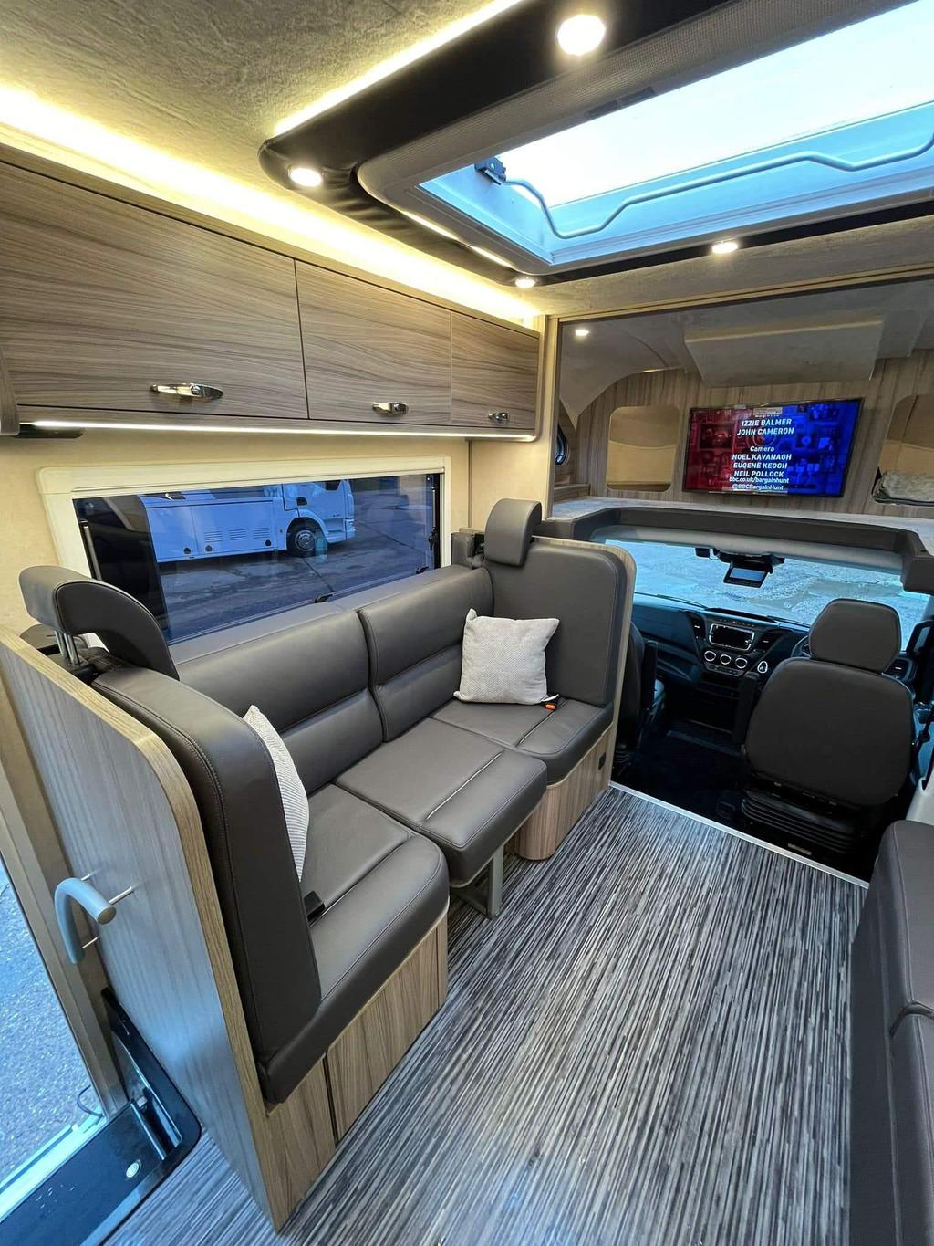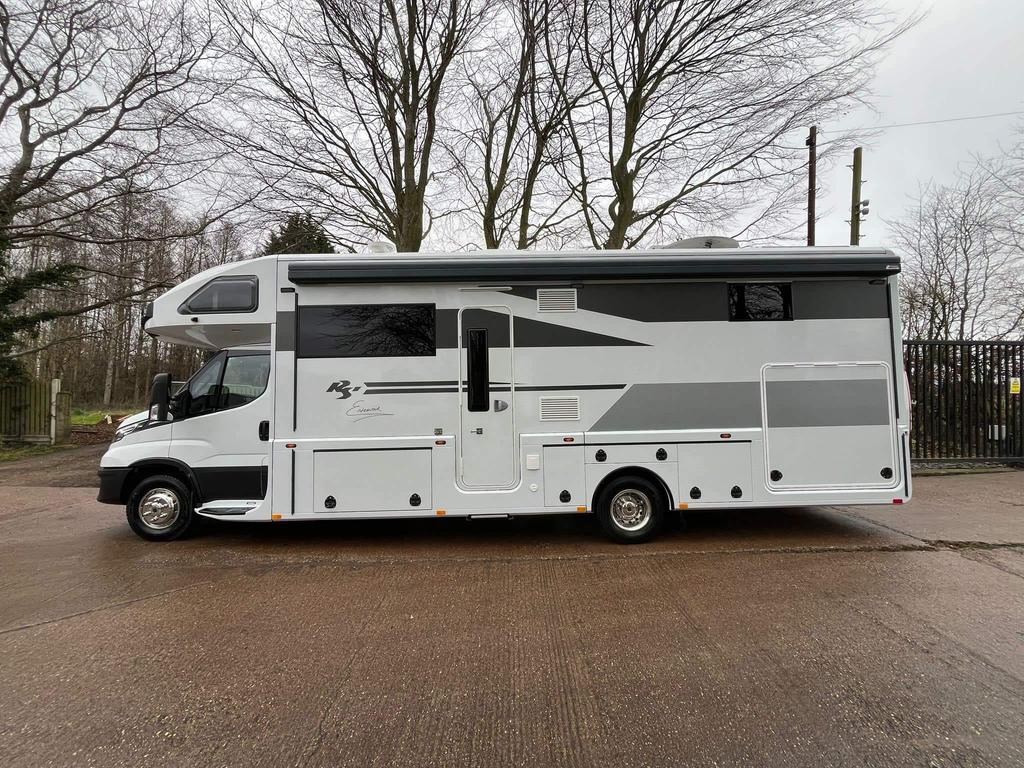 This 2024 RS Endeavour motorhome combines luxury and functionality, offering a spacious interior with a fully equipped kitchen, a fixed island bed, and ample storage. With only 4,501 miles, it is essentially like new, featuring a slide-out for extra space and a powerful 3.0L engine with 210bhp. Ideal for long trips or weekend getaways, this model is equipped with advanced features such as Wi-Fi, underfloor heating, solar panels, and a 360-degree camera system. The end bedroom provides a comfortable retreat, and the motorhome is designed for convenience and ease with automatic transmission, air suspension, and a built-in generator.