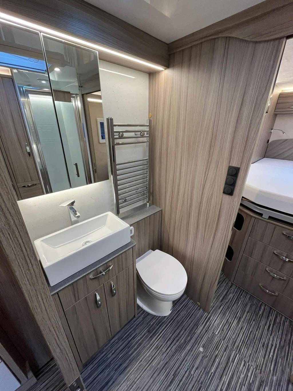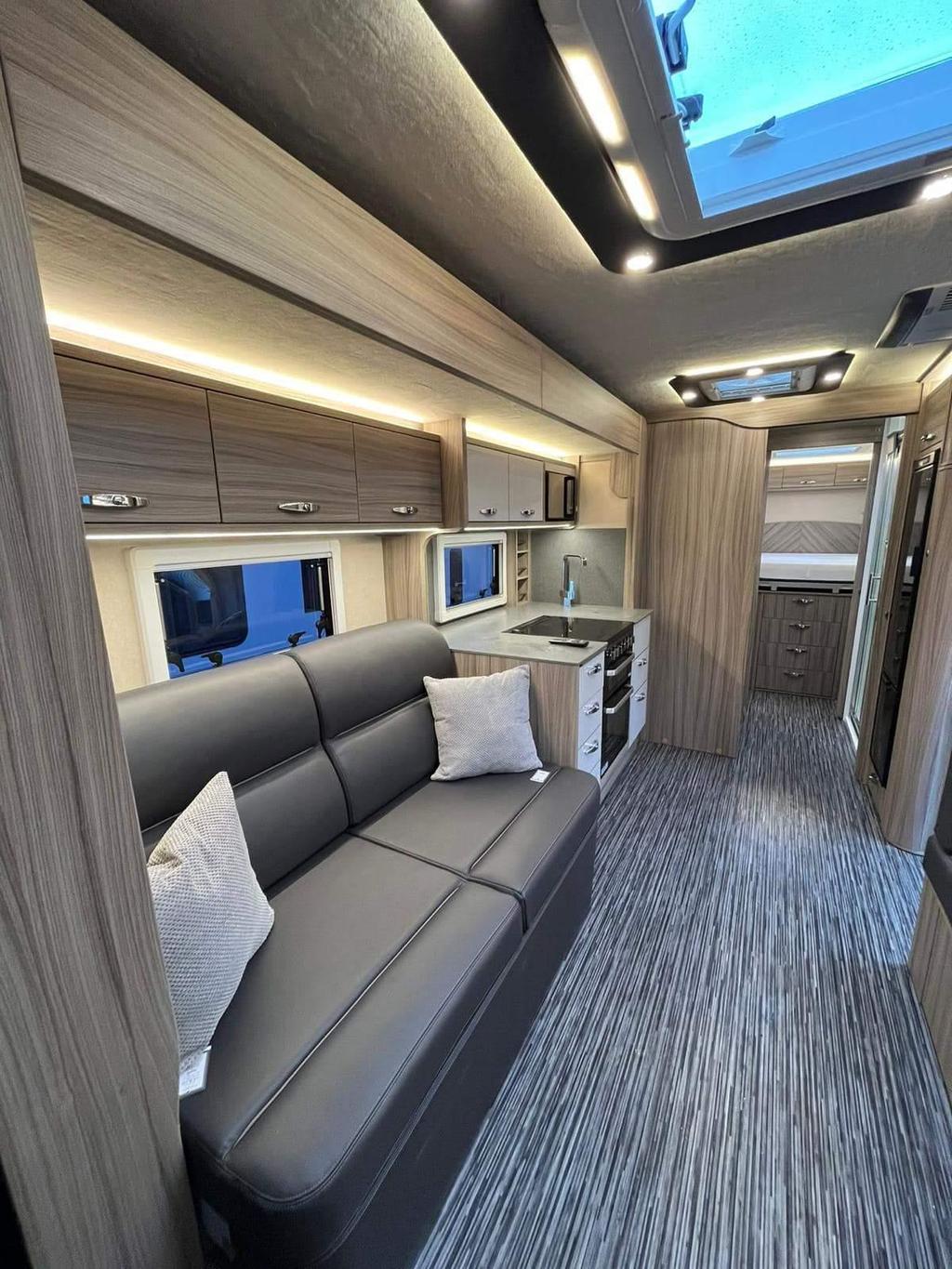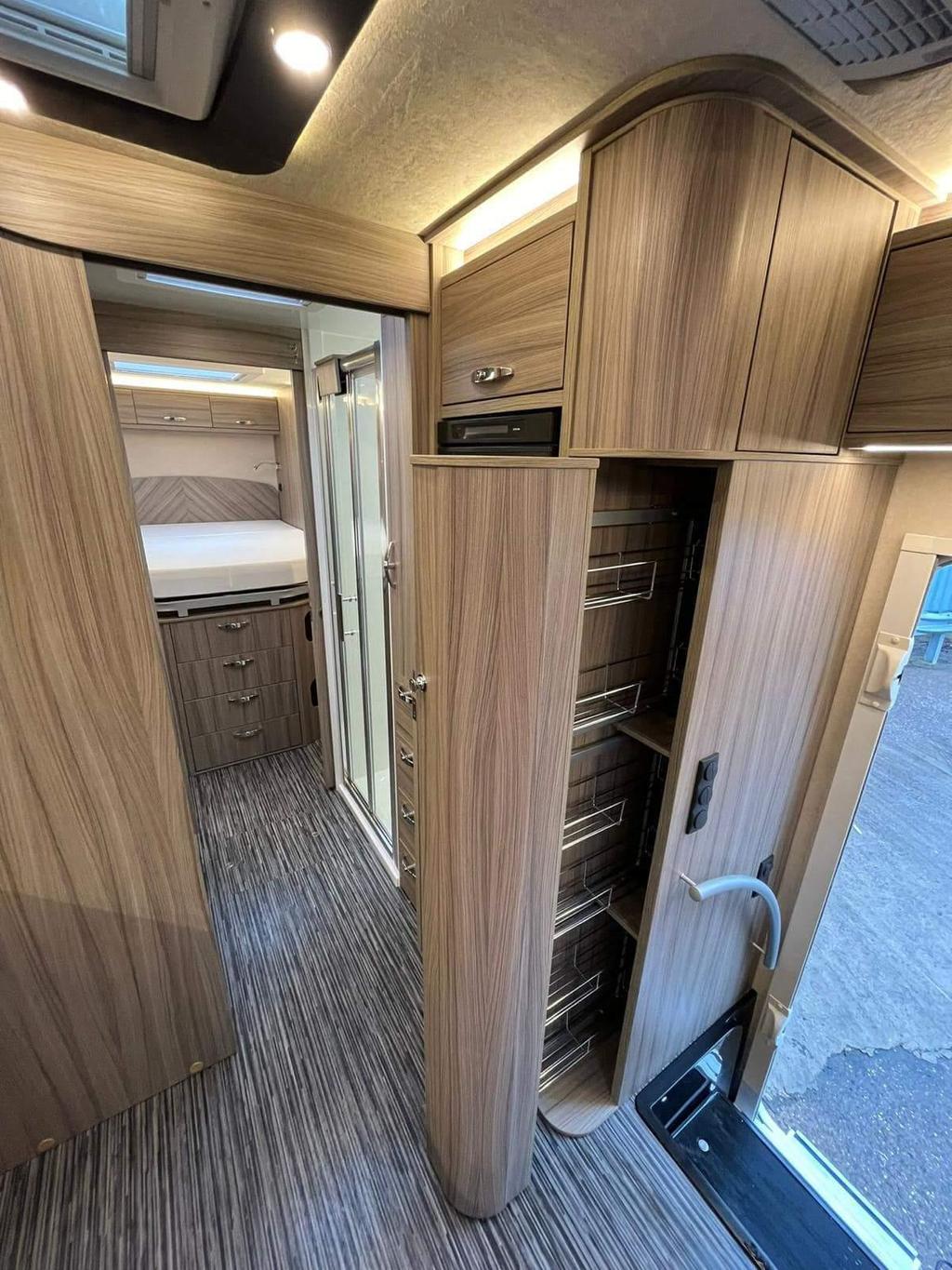 This 2024 RS Endeavour motorhome combines luxury and functionality, offering a spacious interior with a fully equipped kitchen, a fixed island bed, and ample storage. With only 4,501 miles, it is essentially like new, featuring a slide-out for extra space and a powerful 3.0L engine with 210bhp. Ideal for long trips or weekend getaways, this model is equipped with advanced features such as Wi-Fi, underfloor heating, solar panels, and a 360-degree camera system. The end bedroom provides a comfortable retreat, and the motorhome is designed for convenience and ease with automatic transmission, air suspension, and a built-in generator.