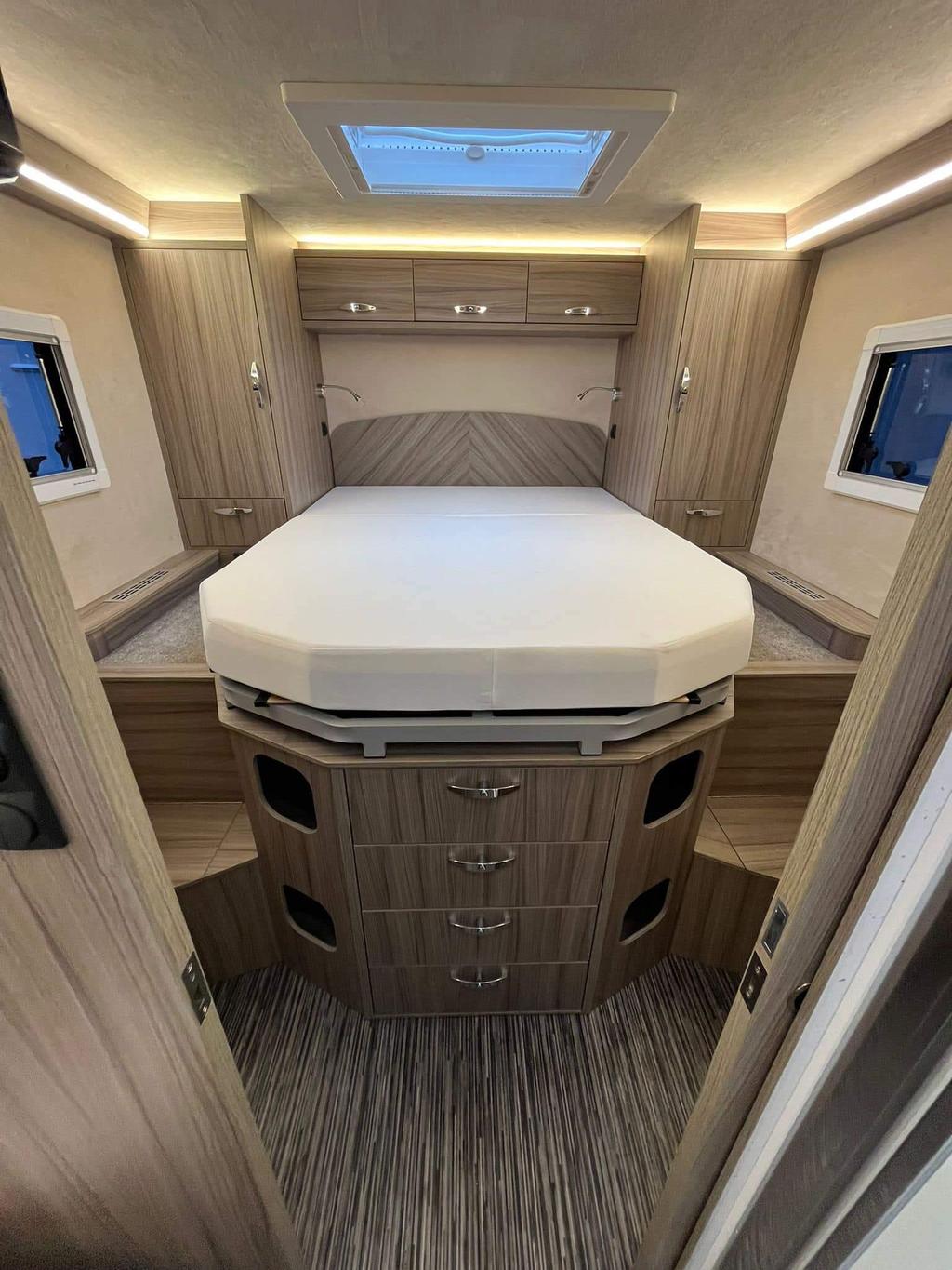 - Layout: End bedroom with fixed island bed