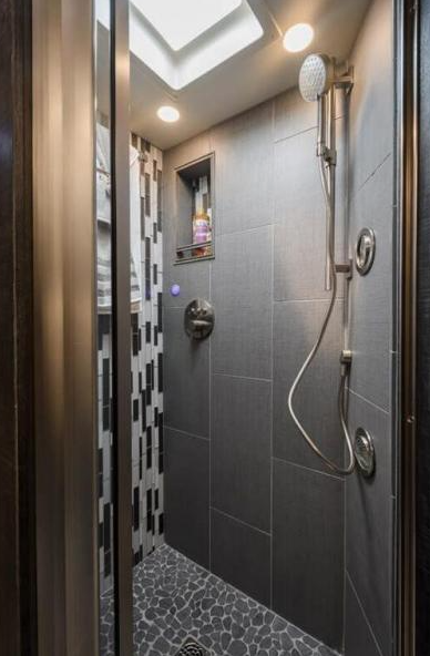 - Added Convenience: Dual power awnings, solar panels, dishwasher, satellite system, and WiFi ranger.