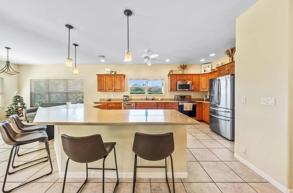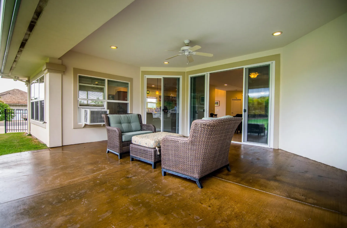 Nestled in the exclusive Kulamalu Hilltop, this stunning 3-bedroom, 3-bathroom home offers elegant living with breathtaking views and year-round comfort. The single-level design features vaulted ceilings, large windows, and cream porcelain tile floors throughout. The spacious open floor plan seamlessly connects the oversized kitchen, dining area, living room, and outdoor covered lanai, creating an ideal space for relaxation and entertaining.