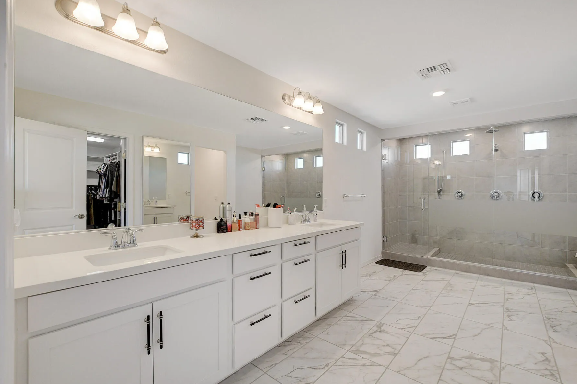 • Dual master suites: Each with custom closets, luxurious walk-in showers, and en-suite bathrooms.