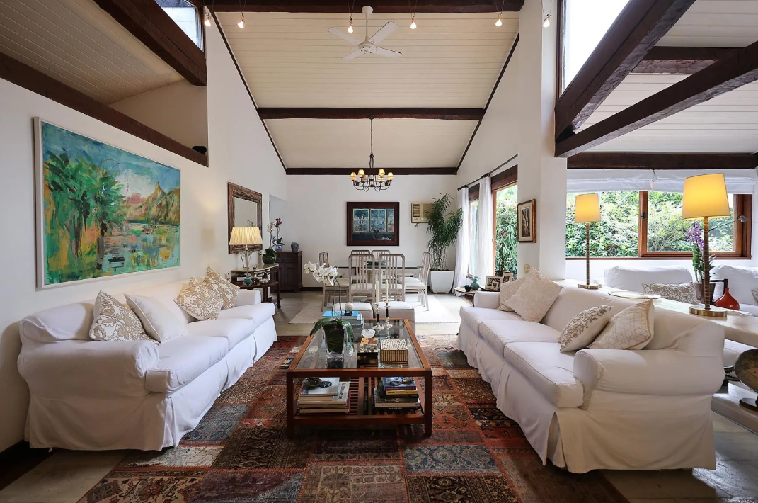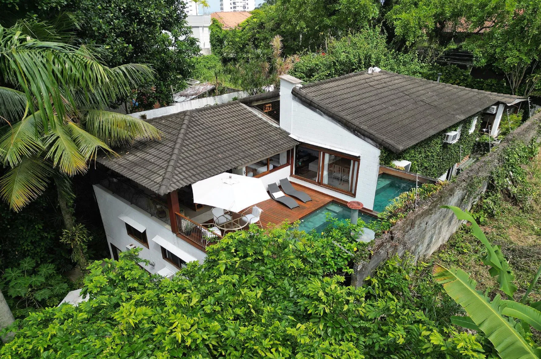 Nestled in the greenery of São Conrado, this two-story home offers luxurious living with breathtaking views of Gávea Golf Club, Pedra da Gávea, and Pedra Bonita. The property harmonizes modern comfort with natural beauty, creating an exquisite retreat.