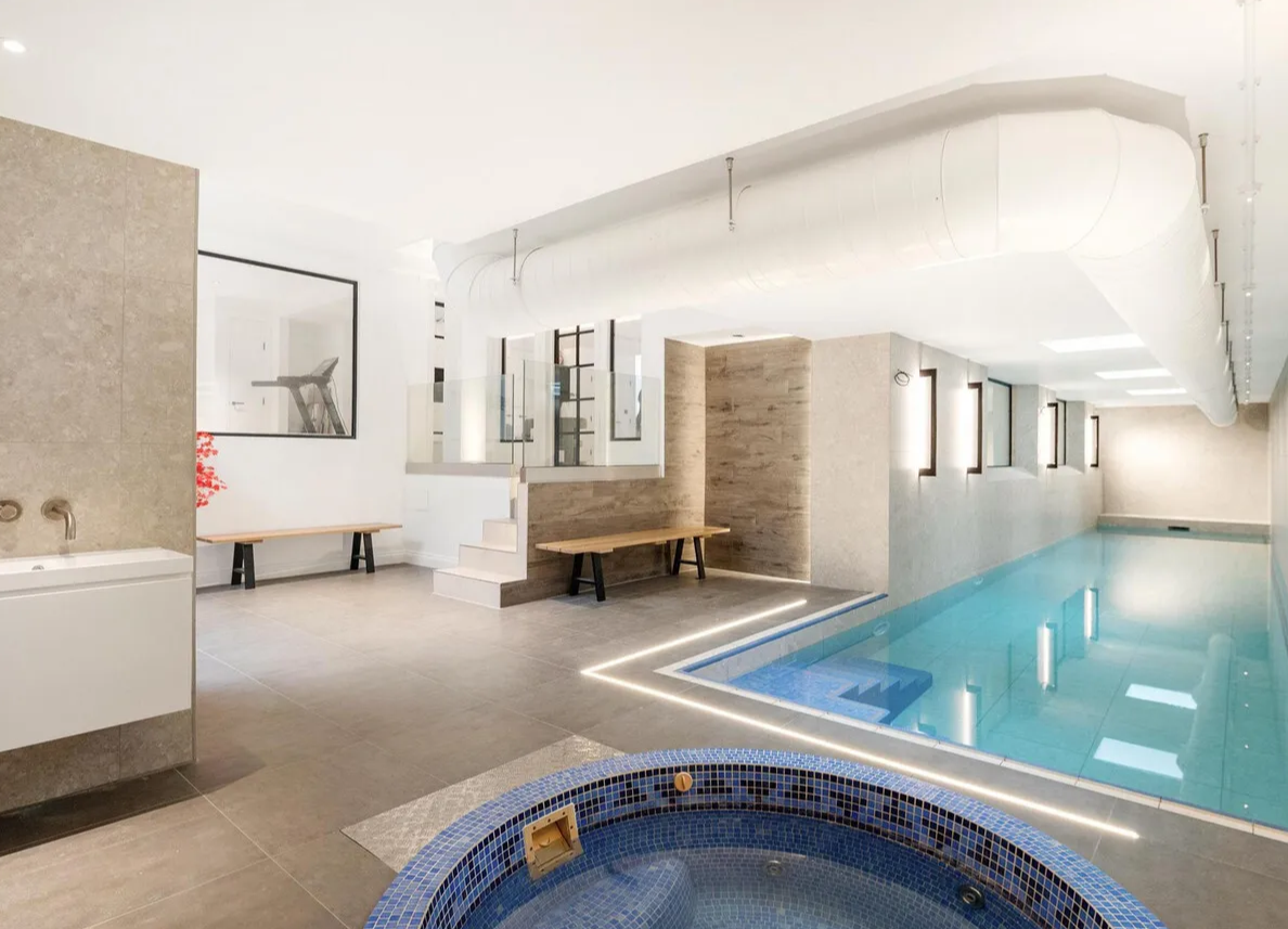 • Lower ground floor with a private cinema, gym, swimming pool, jacuzzi, and secluded terrace.