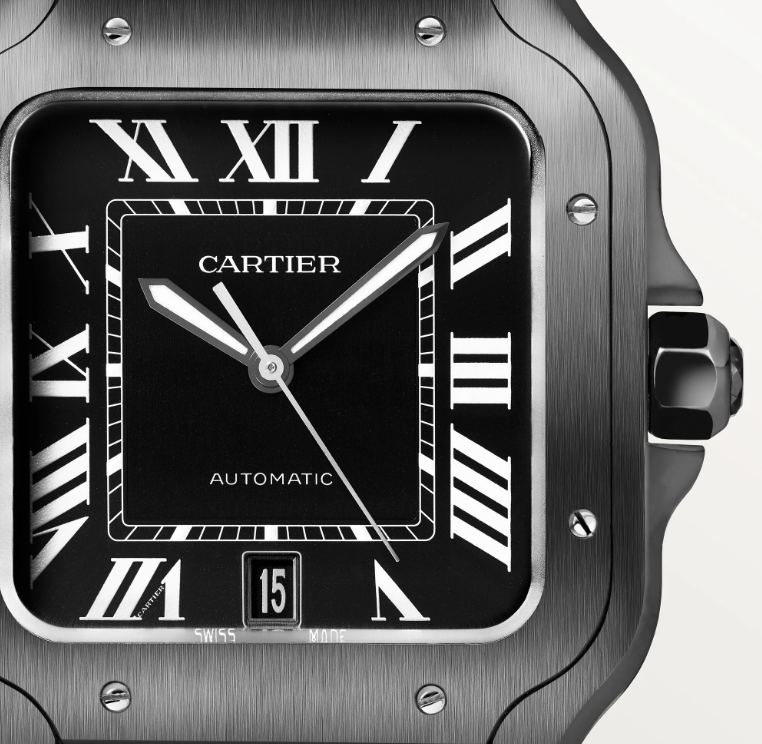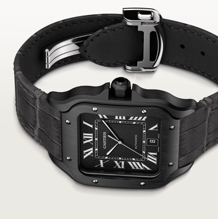 The Santos de Cartier Large Model is a sophisticated timepiece that combines a sleek design with cutting-edge technology. Featuring a mechanical movement with automatic winding, this watch offers both style and performance.