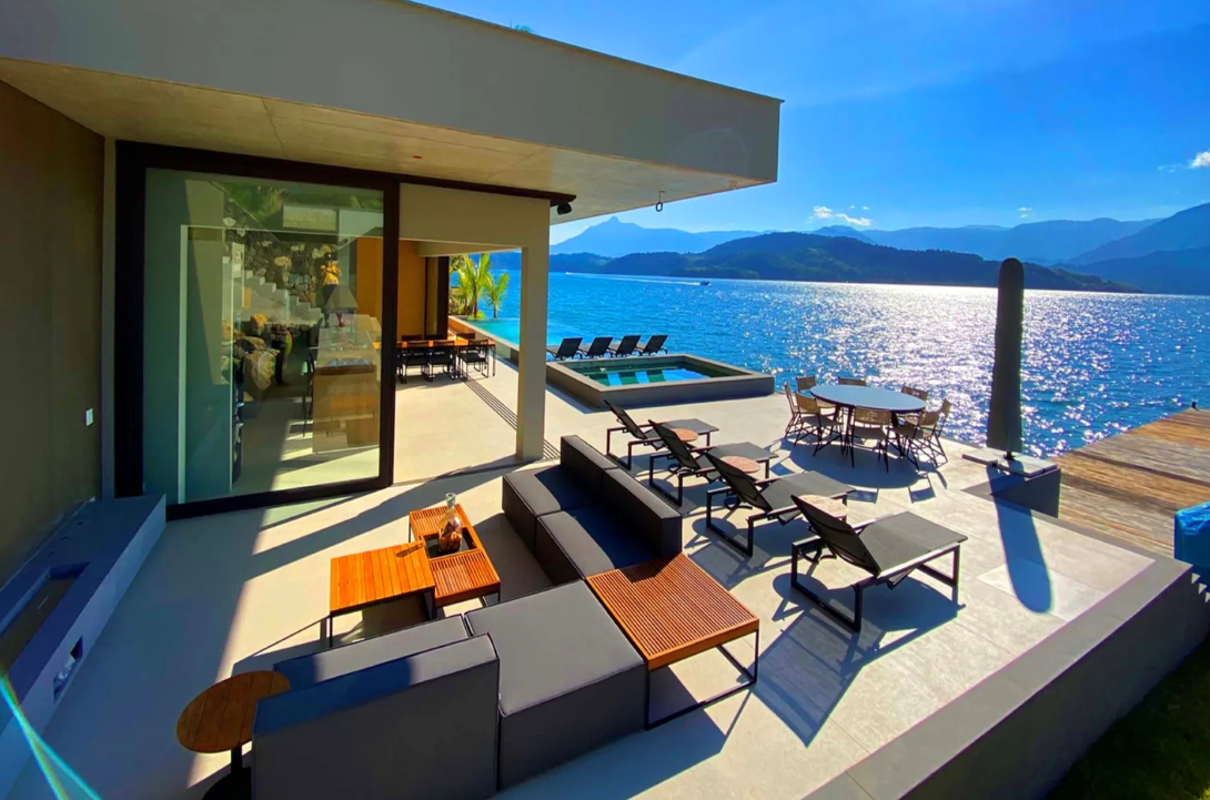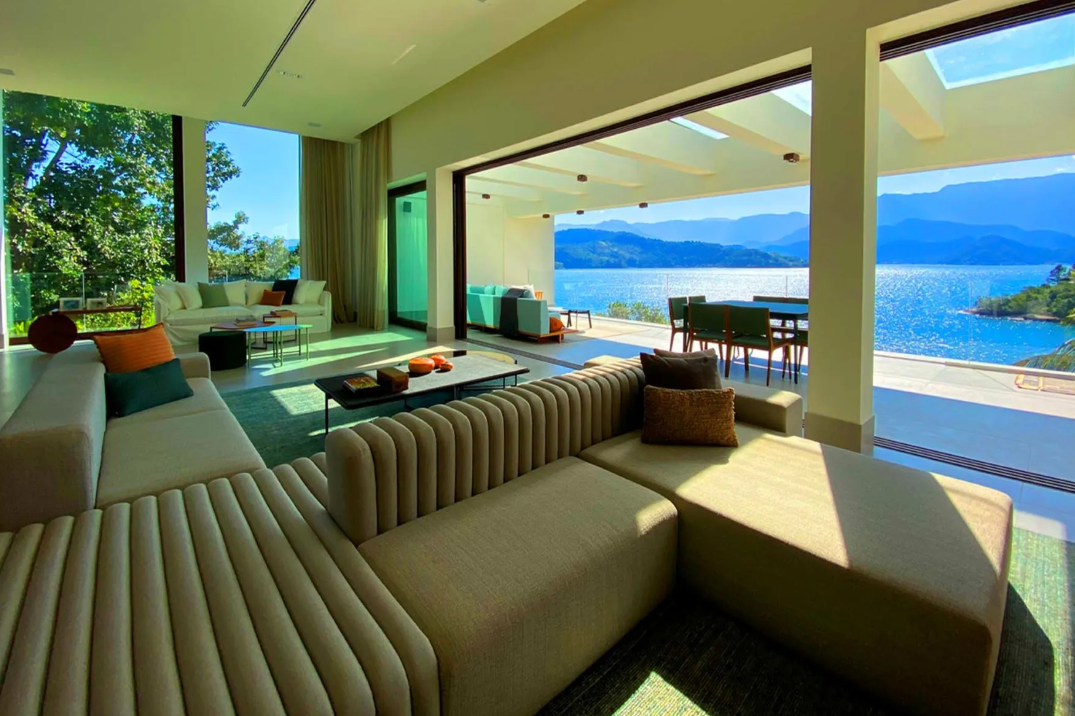 This contemporary luxury home in Angra dos Reis, Rio de Janeiro, offers a blend of elegant design, expansive spaces, and oceanfront views.