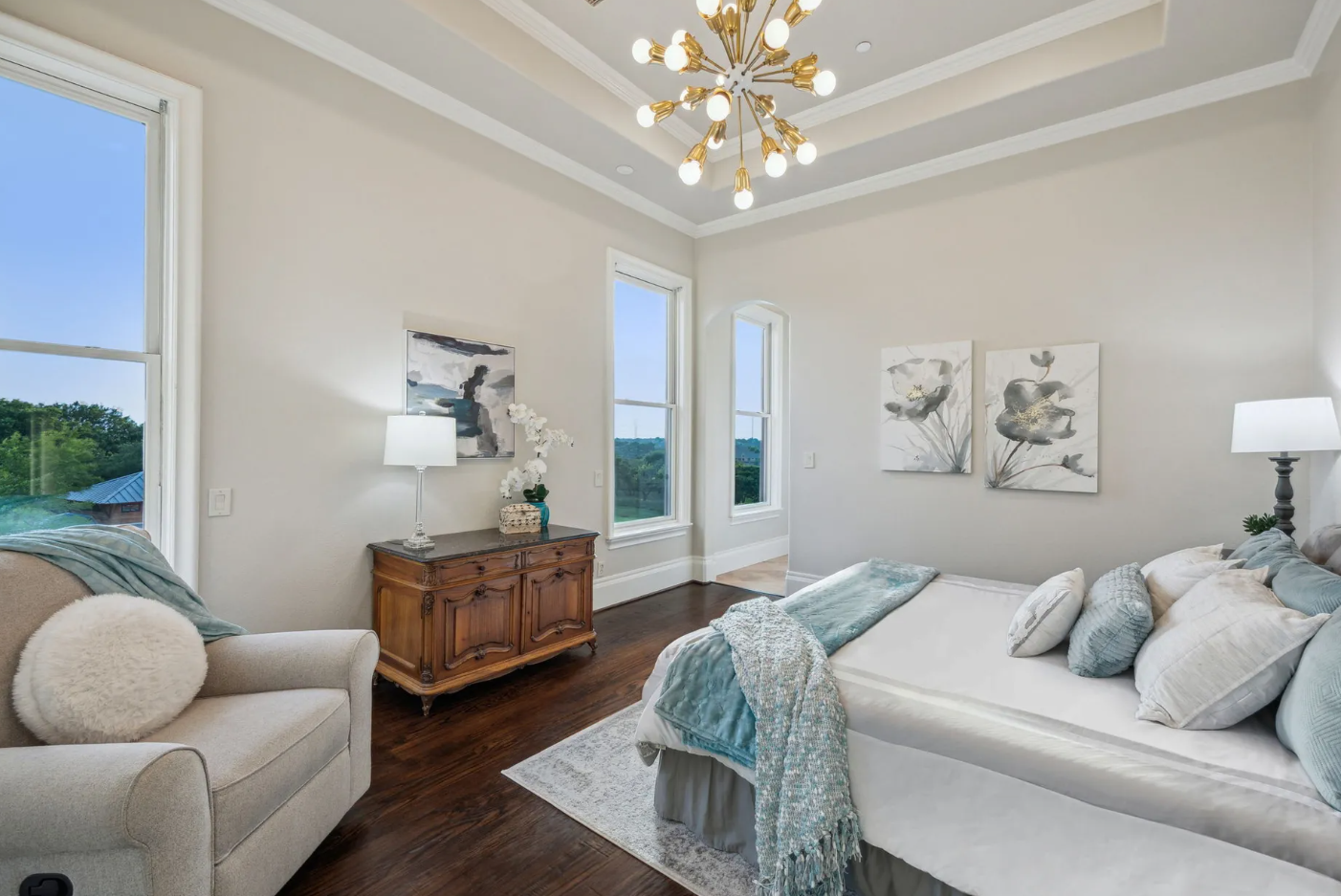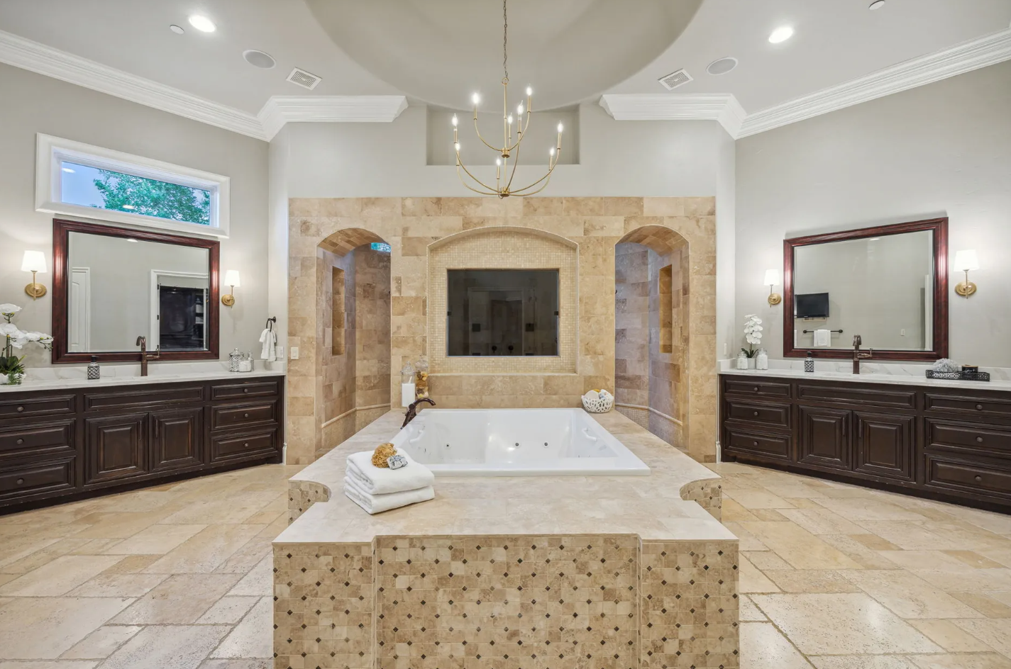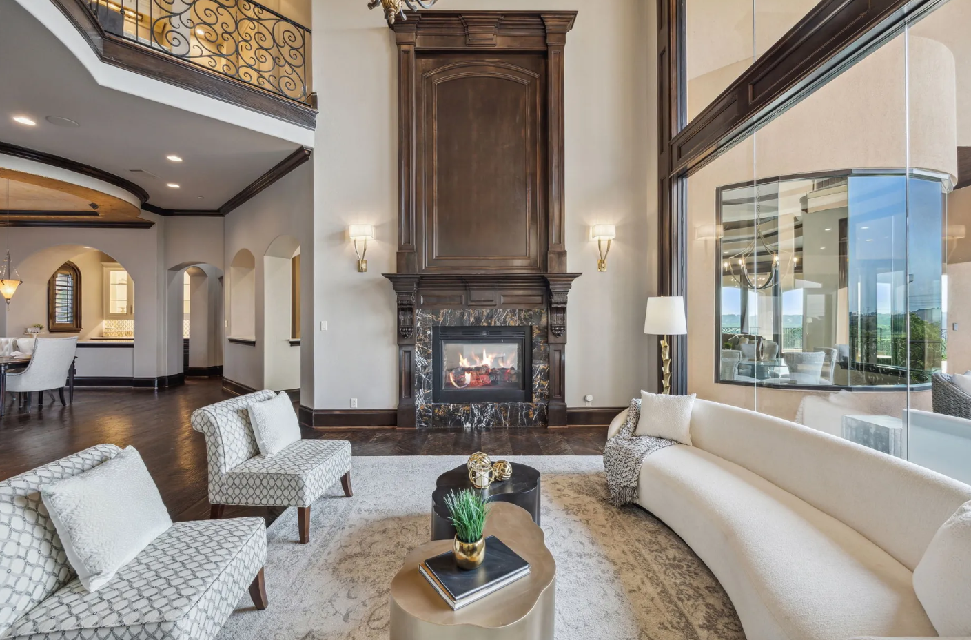 • Private bedroom suites, including a lavish primary retreat with a fireplace and spa-inspired bathroom.