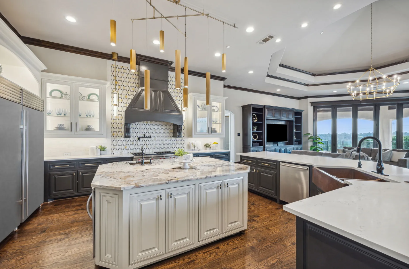 • Chef’s kitchen with premium 72-inch Subzero-Wolf appliances.
