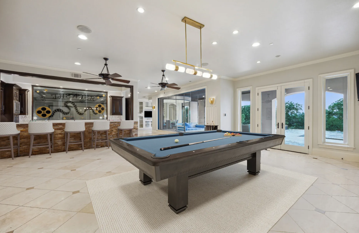 • Game room, wine cellar, card room, and an 8-seat theater.