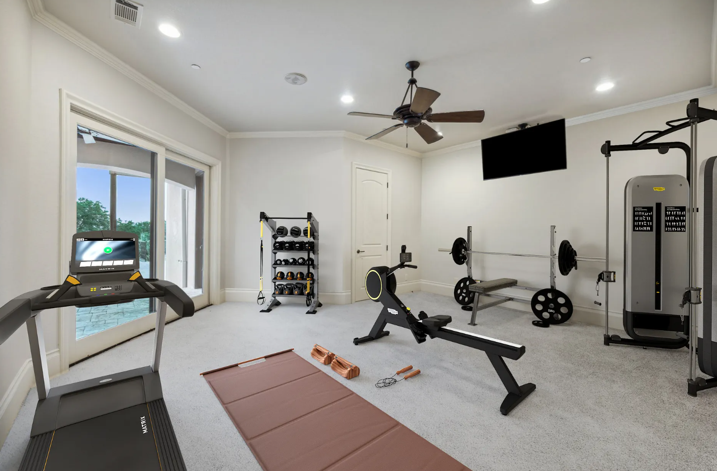 • Lower level with wellness-focused amenities, including a sauna and space for a gym or other recreational additions.