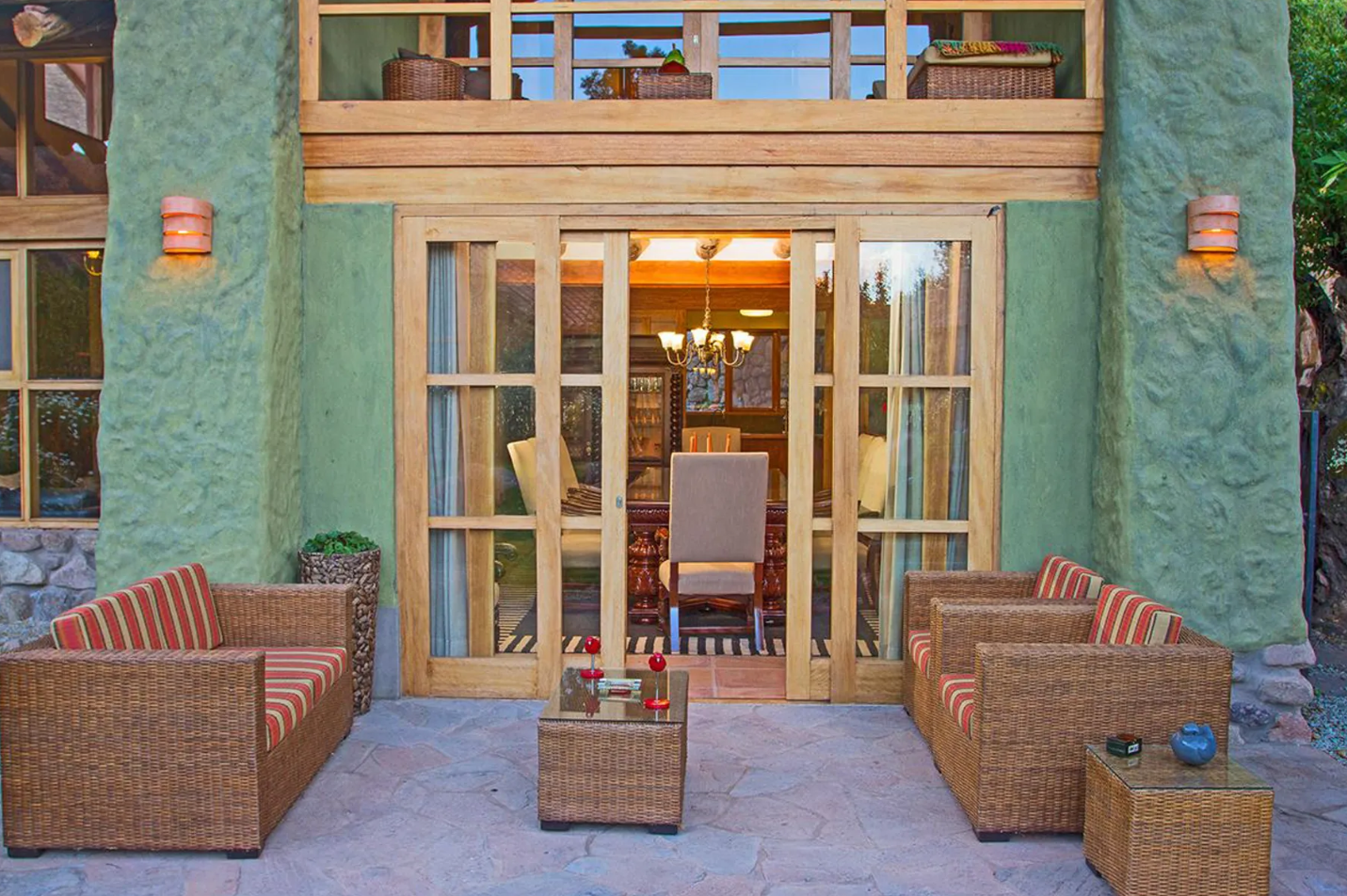 - Stone terrace with seating for 12, ideal for gatherings.