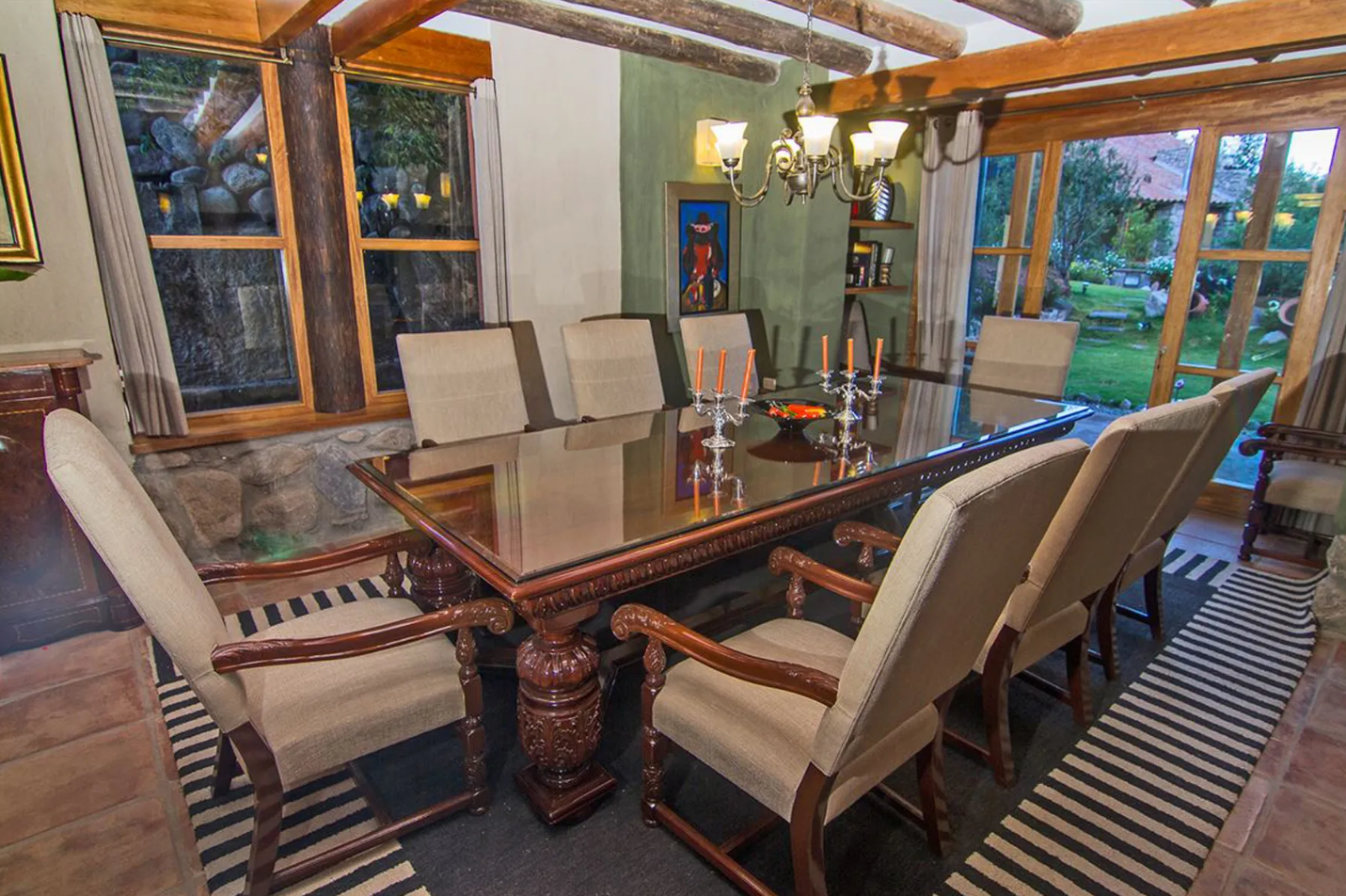 - Dining Room: Formal dining area with direct access to the lush garden.
