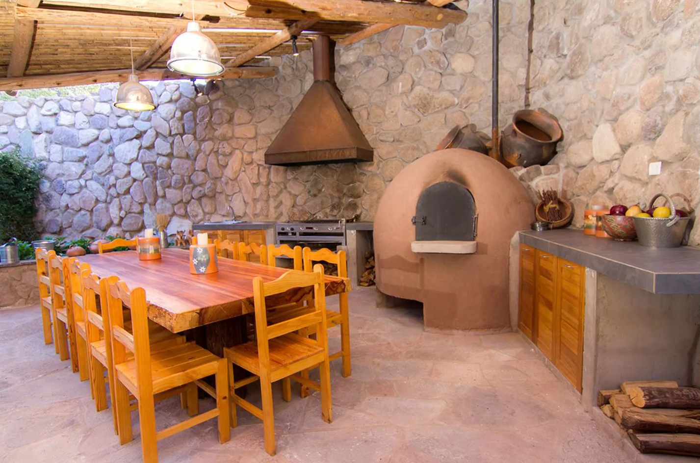 - BBQ area with a pizza oven and a dedicated stone campfire space.