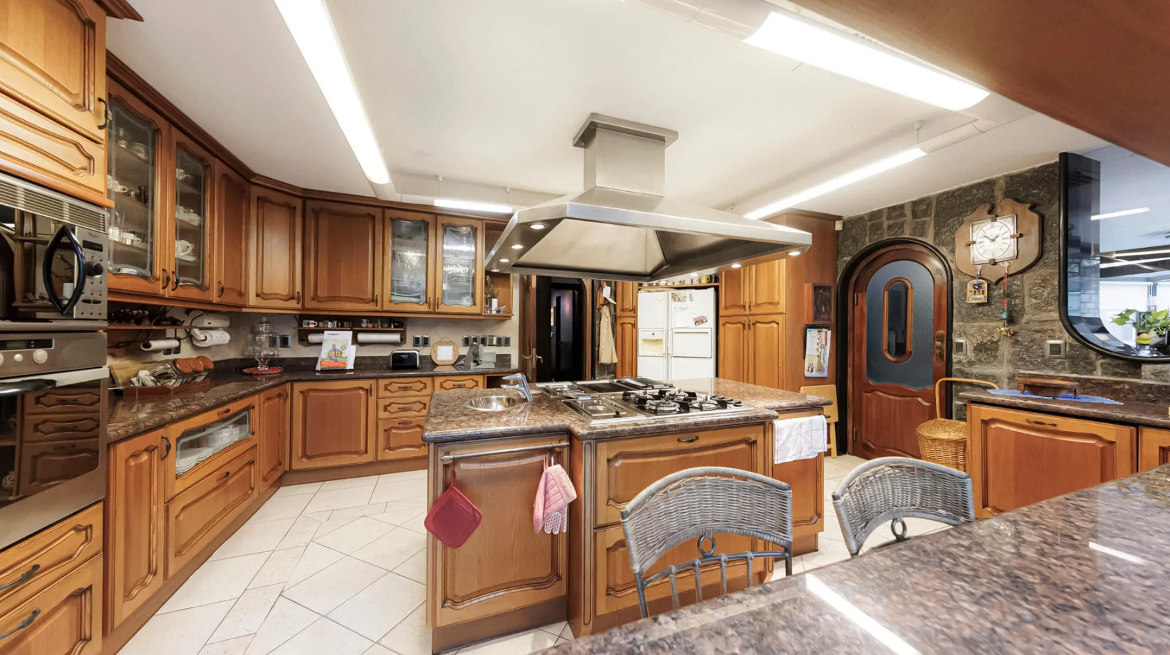 - Modern kitchen with built-in ovens, freezer, and breakfast nook.