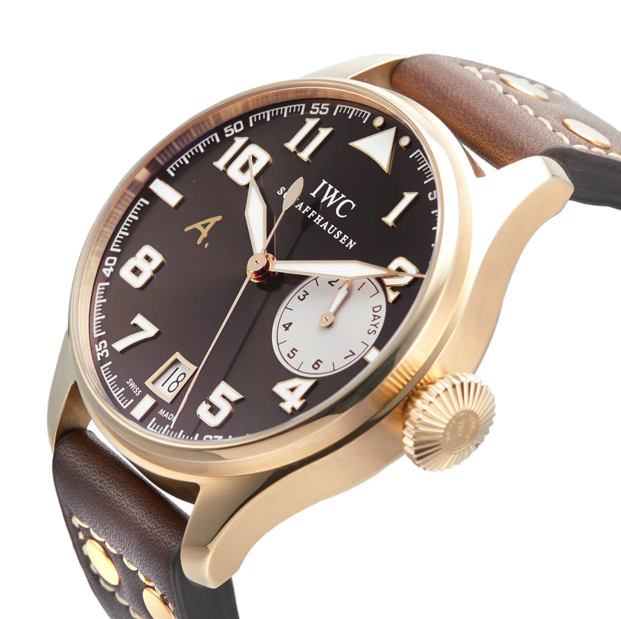 The IWC Big Pilot’s Antoine De Saint Exupery Edition IW500421 is a masterpiece of aviation-inspired horology, paying tribute to the legendary French aviator and writer, Antoine De Saint Exupery. This exquisite 46mm rose gold timepiece exudes luxury and craftsmanship, making it a must-have for collectors and watch enthusiasts. Featuring a rich brown dial with a refined sunburst finish, this edition blends classic aesthetics with the technical prowess that defines IWC Schaffhausen.