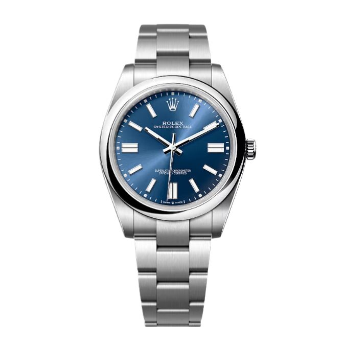 The Rolex Oyster Perpetual 36 with its radiant bright blue dial embodies a perfect blend of classic design and modern innovation. Crafted from corrosion-resistant Oystersteel and featuring a sleek domed bezel, this timepiece offers both durability and sophistication. With its high-performance movement and impeccable craftsmanship, this watch is an ideal choice for those who appreciate precision, reliability, and timeless elegance.